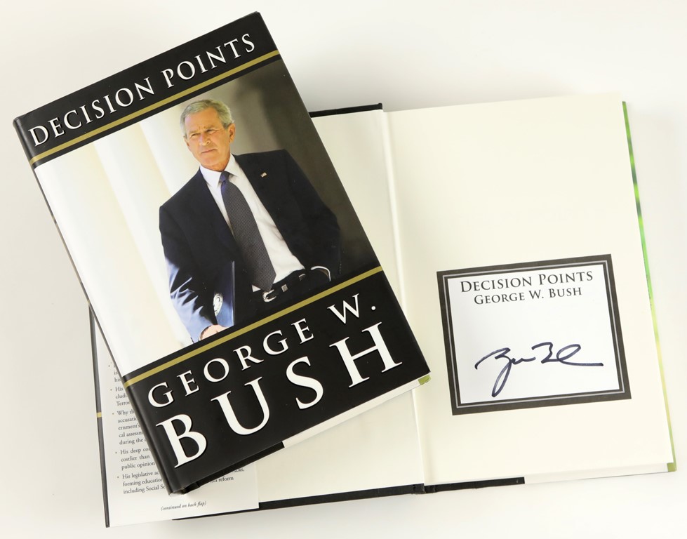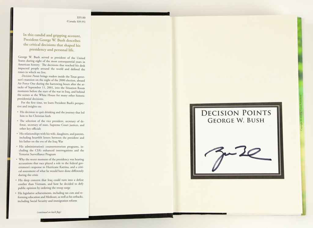 Very clean, like-new pair of books. This lot features two (2) copies of George W. Bush's 2010 book, "Decision Points." One is signed on the inside front cover in black marker by the 43rd President of the United States.