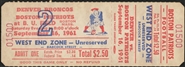September 16, 1961, Boston Patriots vs. Denver Broncos Full Ticket