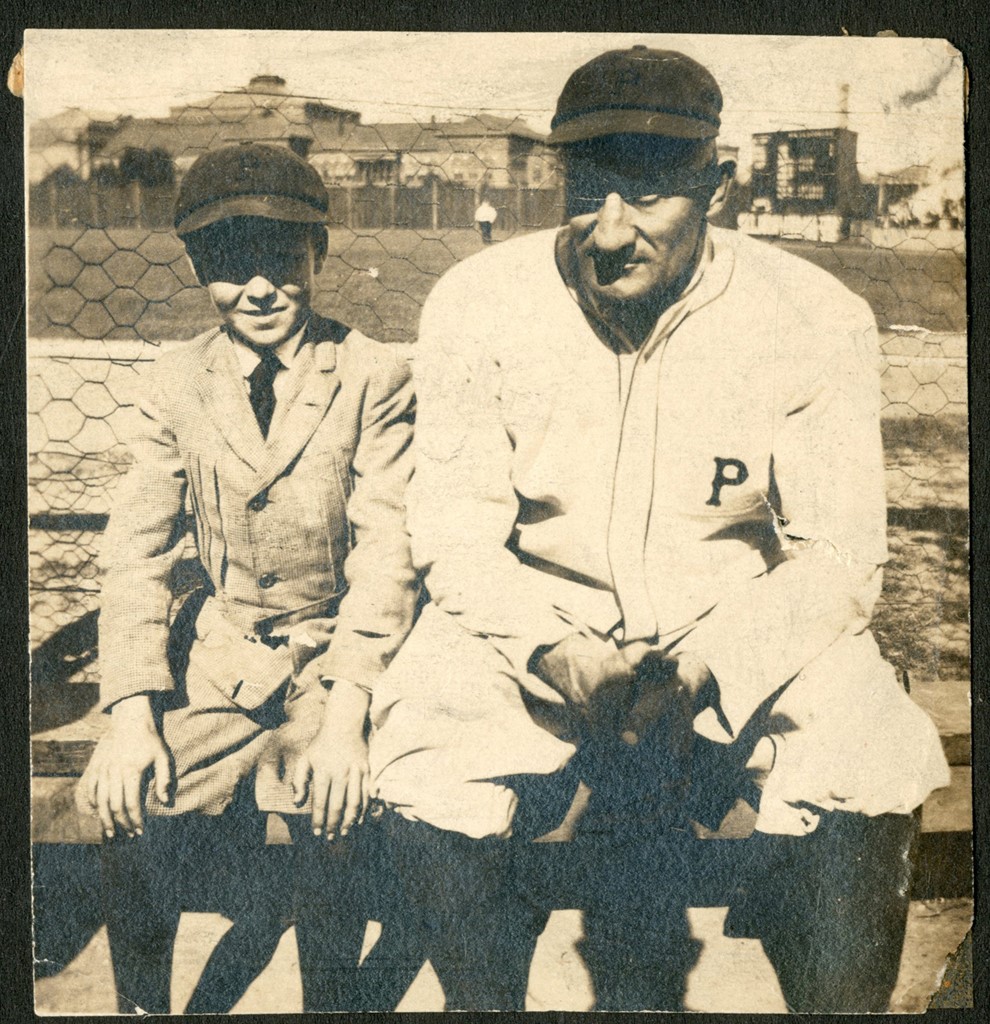 -the consignor's grandfather is pictured circa 1916 with Wagner and the bat