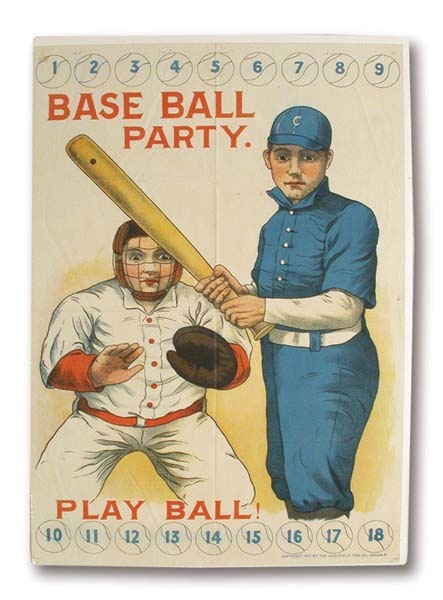 What a charming image of this early Hall of Famer. We aren't sure exactly how the game was played, but it seems as if it involved throwing something at this linen "sheet" printed with the two old-time ballplayers and numbered baseballs framing them at top and bottom. It doesn't look like this one was ever used though, and short of the original packaging folds there is very little that could be described as wear. It must be the finest surviving specimen. A great piece to frame and hang on your wall in the "Early Years" section.