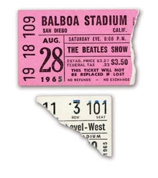 A five-day respite came to an end as the group trekked to San Diego's Balboa Stadium to play for 17,000. A pair of stubs.