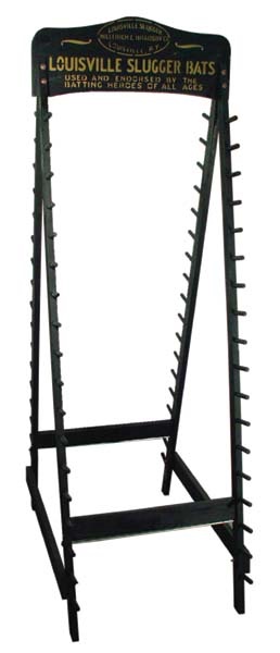 A perfect reproduction of the rack that held bats at 1920’s sporting goods stores. Absolutely indistinguishable from the real thing. Holds thirty-six bats, so your collection should fit nicely here. NRMT.