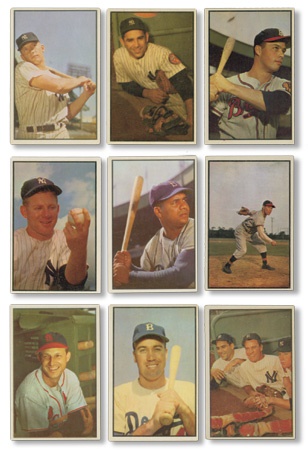 Presented here is a pair of sets produced by Bowman in 1953 and 1954. The ’53 Bowman Color set is complete with 221 cards. It is one of the most popular sets of the postwar era. Some of the key cards grade as follows: #32 Musial (EX-MT to NRMT), 33 Reese (EX), 44 Mantle/Berra/Bauer (EX), 46 Campanella (EX-MT+), 59 Mantle (1 ?” surface crease on obverse, o/w EX), 97 Mathews (NRMT+), 114 Feller (EX), 117 Snider (EX+ to EX-MT), 121 Berra (light surface wrinkle on obverse, o/w NRMT), and 153 Ford (very light surface wrinkle on obverse, o/w NM-MT). Set conservatively averages EX-MT with some NRMT examples throughout the set. Great gloss and gorgeous eye appeal highlight the set throughout. The ’54 set contains 214/225 cards. The following numbers are lacking from the set #1 Rizzuto, 64, 89 Mays, 90 Campy, 138, 141, 145, 161 Berra, 163, 170 Snider, and 177. Some of the key cards grade as follows: #15 Ashburn (EX), 58 Reese (EX), 65 Mantle (Poor), 101 Larsen rookie (EX), 132 Feller (EX), etc. Balance of the set averages EX to EX+. As a bonus this lot comes with a Mantle ’53 & Williams ’54 reprint card, which are both autographed. Also included is (8) original ’53 Bowman’s that are autographed.