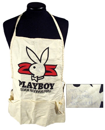 The beautiful Dorothy Stratten wore this little apron with “Playboy Silver Anniversary” on the front with the playboy bunny logo. She signed it on the front “Love Dorothy Stratten”. The hot 20-year-old Playboy Playmate / Model / Actress was the victim of a gruesome murder at the hands of ex-husband, Paul Snider. Apron was obtained in her hometown of Vancouver.
