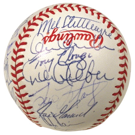 Each night a new hero would emerge from the dugout to will the team to victory in a truly inspirational manner. The ’98 Yankees were the greatest “team” of all time. Steamrolling their way to a record setting 125 victories, on their way to the first of three consecutive titles, this team was one for the ages. Jeter, Williams, Wells, Rivera, Clemens, they’re all here, 30 signatures in total, clearly and boldly covering this, “Rawlings, 1998 World Series, Official Ball”. Mint.