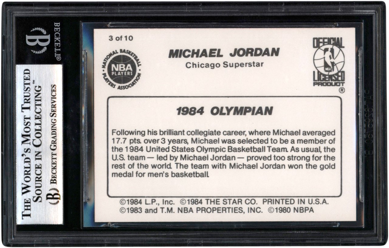 1986 Star #3 Michael Jordan has been freshly graded and encapsulated MINT 9 by BGS and features sub-grades including Centering 9; Corners 9.5; Edges 9; and Surface 9.
