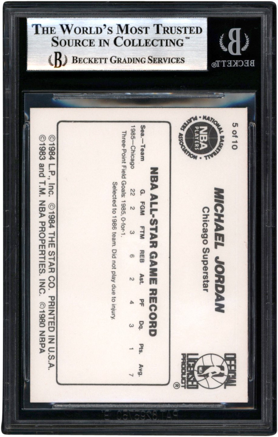 1986 Star #5 Michael Jordan has been freshly graded and encapsulated MINT 9 by BGS and features subgrades including 8.5 Centering; 9 Corners; 9 Edges and 9.5 Surface.