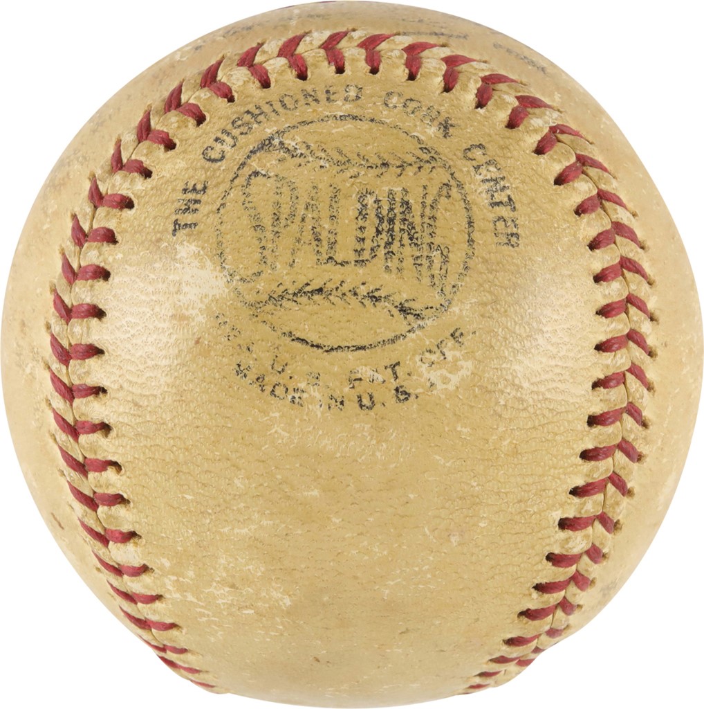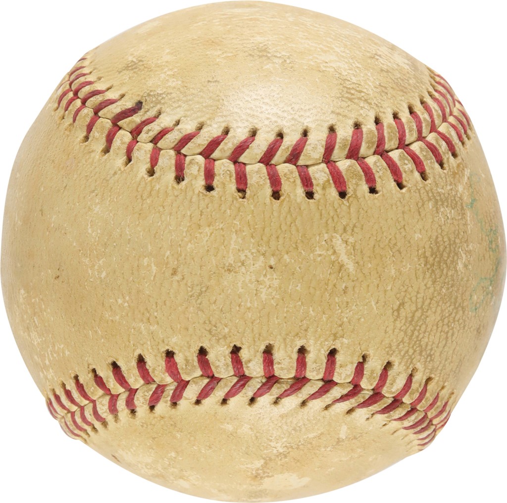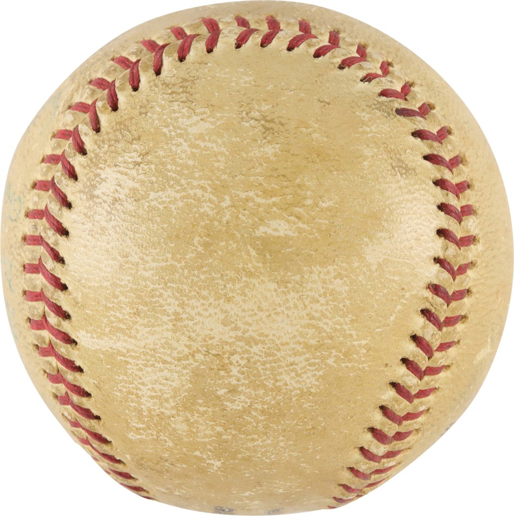 Displayed is a signed game used baseball from Sandy Koufax from the Hall of Famer's second no-hitter, pitched on May 11, 1963, at Dodger Stadium. A crowd of 55,350 was in the stands as the Los Angeles Dodgers hosted the rival San Francisco Giants. The Dodgers led 1-0 until they scored three times in the sixth inning to take a 4-0 lead. Going into the eighth inning, Koufax was pitching a perfect game. Sandy walked Ed Bailey with one out in the eighth to lose his perfect game, but he hung on, despite not having his best stuff, to complete the no-hitter as Koufax threw 111 pitches, and struck out only four to defeat Juan Marichal by a score of 8-0. Koufax had four no-hitters, and one of those, on September 9, 1965, against the Chicago Cubs, was a perfect game. Koufax was a part of three Dodger World Series championships, including one in this 1963 season. He also was the National MVP in 1963 and won that year's Cy Young Award, and the Pitching Triple Crown, as he went 25-5, with 306 strikeouts and an ERA of 1.88. The consignor's husband was gifted the ball by Marshall Berle (nephew of Milton) when he was a kid. The handwriting, by an unknown hand, reads, " "May 11, 1963, No Hitter, Dodgers + Giants". The ball is signed by Koufax underneath the inscription. It is an Official National League ball showing appropriate use. The signature shows fading but is still legible, and it rates 5/10. The ball is in good condition, and it shows appropriate use. The valuable ball comes from one of the highest achievements by one of the best pitchers of all time.