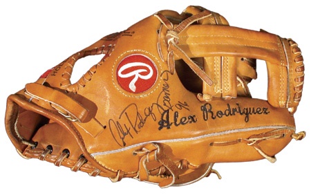 Lot # 1265: 1996 Alex Rodriguez Autographed Game Used Glove