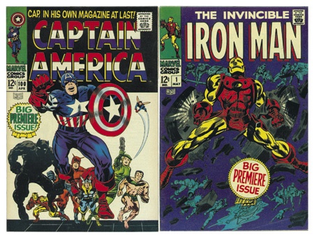 Two of Marvel’s most beloved family members fought side by side as members of the Avengers and with the release of these silver age comics now embark on solo careers against the forces of evil. First issues of “Captain America” and “The Invincible Iron Man” maintain brightly colored covers and remain in EX-MT condition with off white pages and no restorations. ?