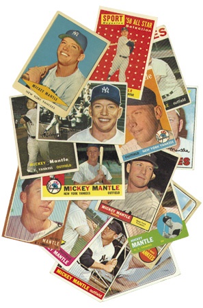 Watch Mantle play from 1954-1969 with these cards! Lot includes 1954 Red Hearts-the lone example that is not Topps in the lot (VG), ’56 #135 (VG+), ’57 #95 (VG-EX to EX), ’58 #150 (EX+), ’58 #487 (EX+), ’60 #350 (EX-MT, o/c), 61 #300 (EX), 62 #200 (EX), ’63 #200 (EX), ’64 #50 (VG+), ’65 #350 (EX-MT), ’66 #50 (VG-EX+), ’67 #150 (VG), ’68 #280 (NRMT+), and ’69 #500 (VG-EX). A great run of mid-grade Mantles.
