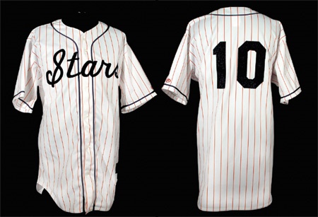 Recalled from Triple-A Syracuse by the Toronto Blue Jays, the 5-tool Wells is a healthy addition to the Jays’ offense. Jersey begotten from a game vs. the Boston Red Sox (July, 2002) in which both teams dressed in Negro League uniforms to honor the Negro League. The Red Sox wore Boston Royal Giants uniforms, while the Blue Jays wore these, Chatham All Stars uniforms. White with red pinstripe, “Stars” stitched across the chest. “10” on verso. “Rawlings” on front left tail. Collar tagging is “Rawlings 50” with “Adult” flag tag. LOA from the Blue Jays.