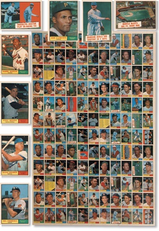 Uncut sheet of 132 cards (#s 371-446) from Series 5. Sheet is highlighted by a plethora of stars: Juan Marichal’s rookie (center of the sheet), Clemente (2), Aaron, Cepeda (2), Kaline (2), Aparicio (2), Snider (2), Gehrig, & Berra (2). For you Yankee’s fans the sheet is highlighted by Mickey Mantle Blasts 565 Ft. Homerun card twice & Babe Ruth Hits 60th homerun twice. Also features short prints of Skowron, Larsen, Mathewson, Mazeroski, etc. Technically VG-EX, it displays beautifully!
