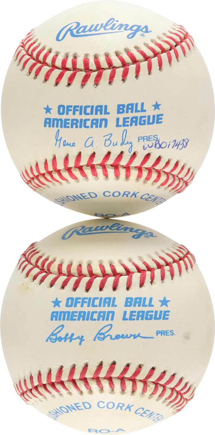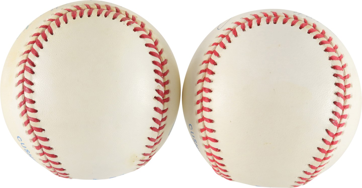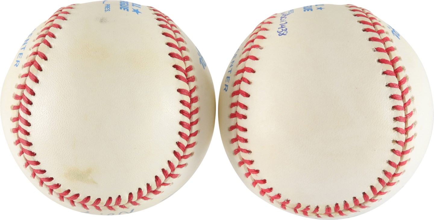 Lot # 470: *** Mickey Mantle and Joe DiMaggio Single Signed Special Inscription Baseballs (SHOW PSA)