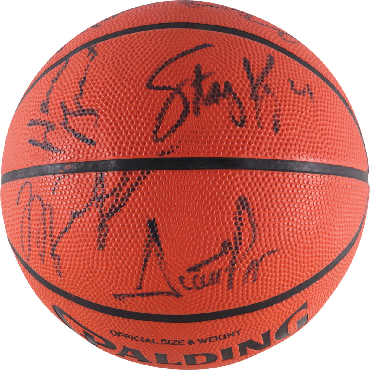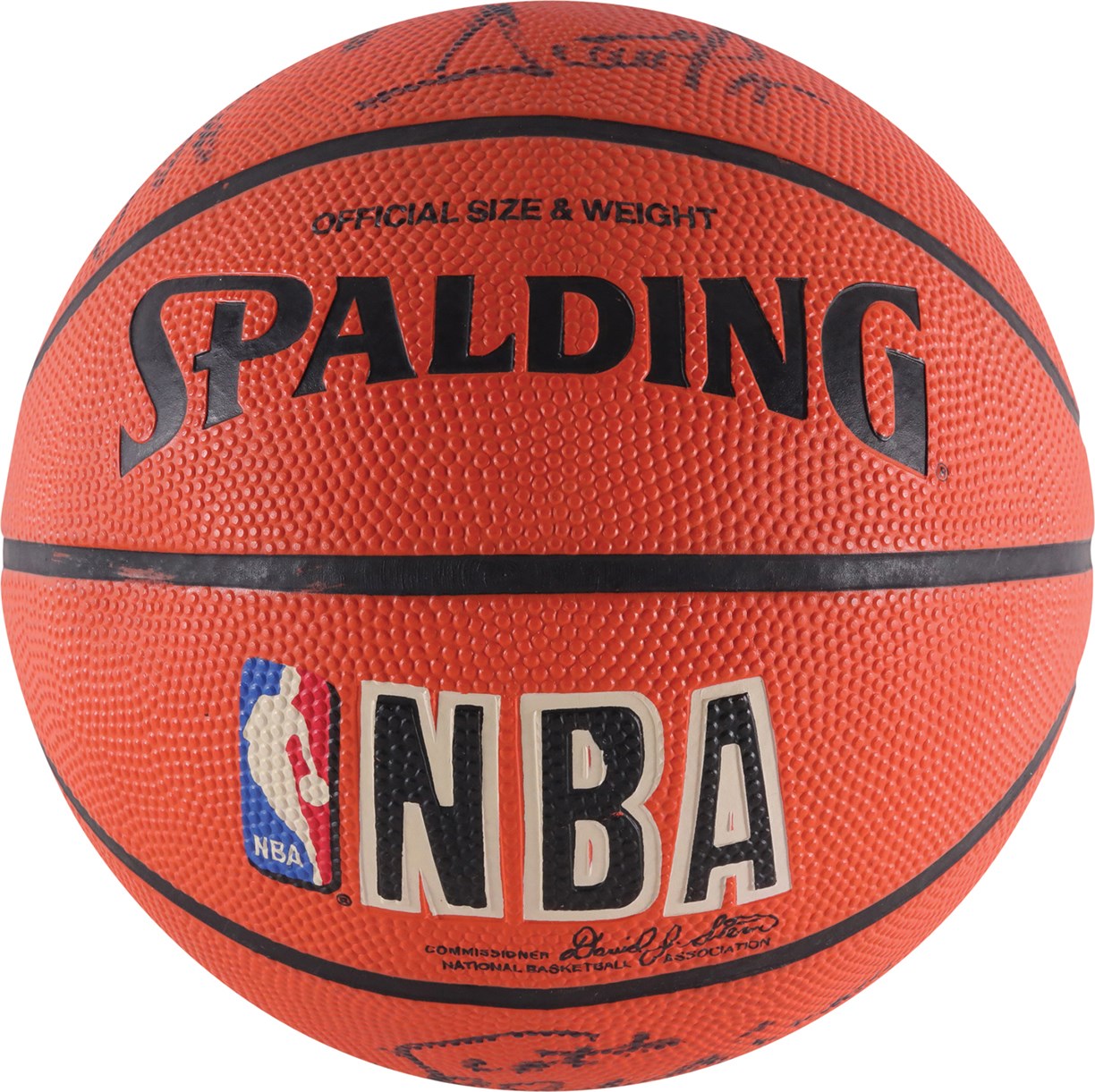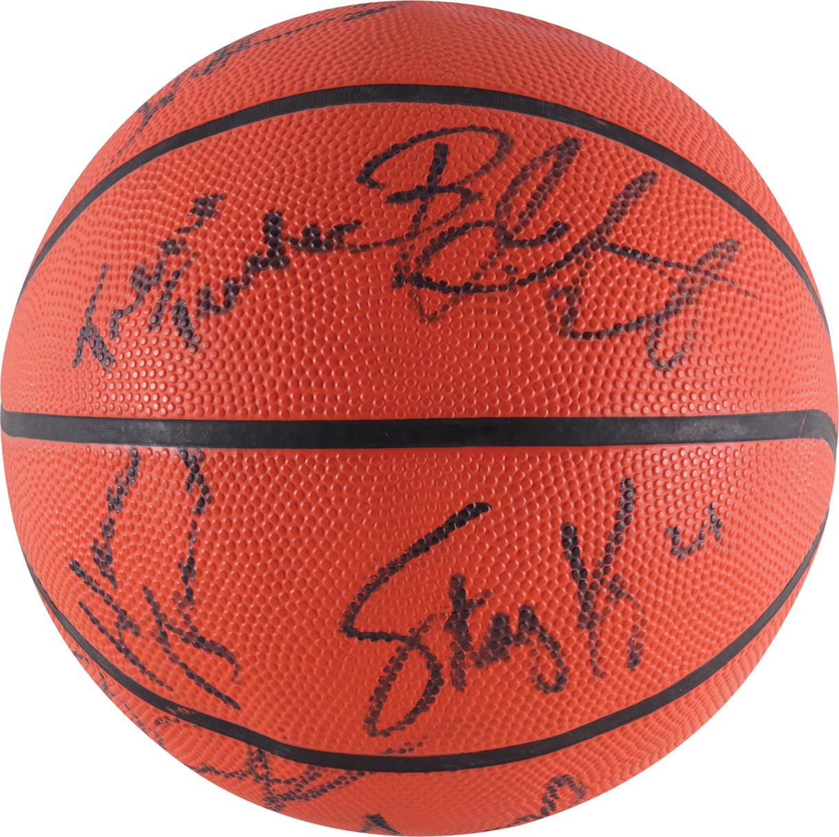 With targets on their backs yet again, the 1992-93 Chicago Bulls continued to thwart the competition enroute to a three-peat as NBA champions. From that glorious season comes this multi-signed Spalding basketball, featuring 10 autographs from the champs: Michael Jordan, Scottie Pippen, Horace Grant, Stacy King, Rodney McCrae, Trent Tucker, Scott Williams, Corey Willaims, Darrell Walker and B.J. Armstrong. The signatures are strong in black Sharpie.
