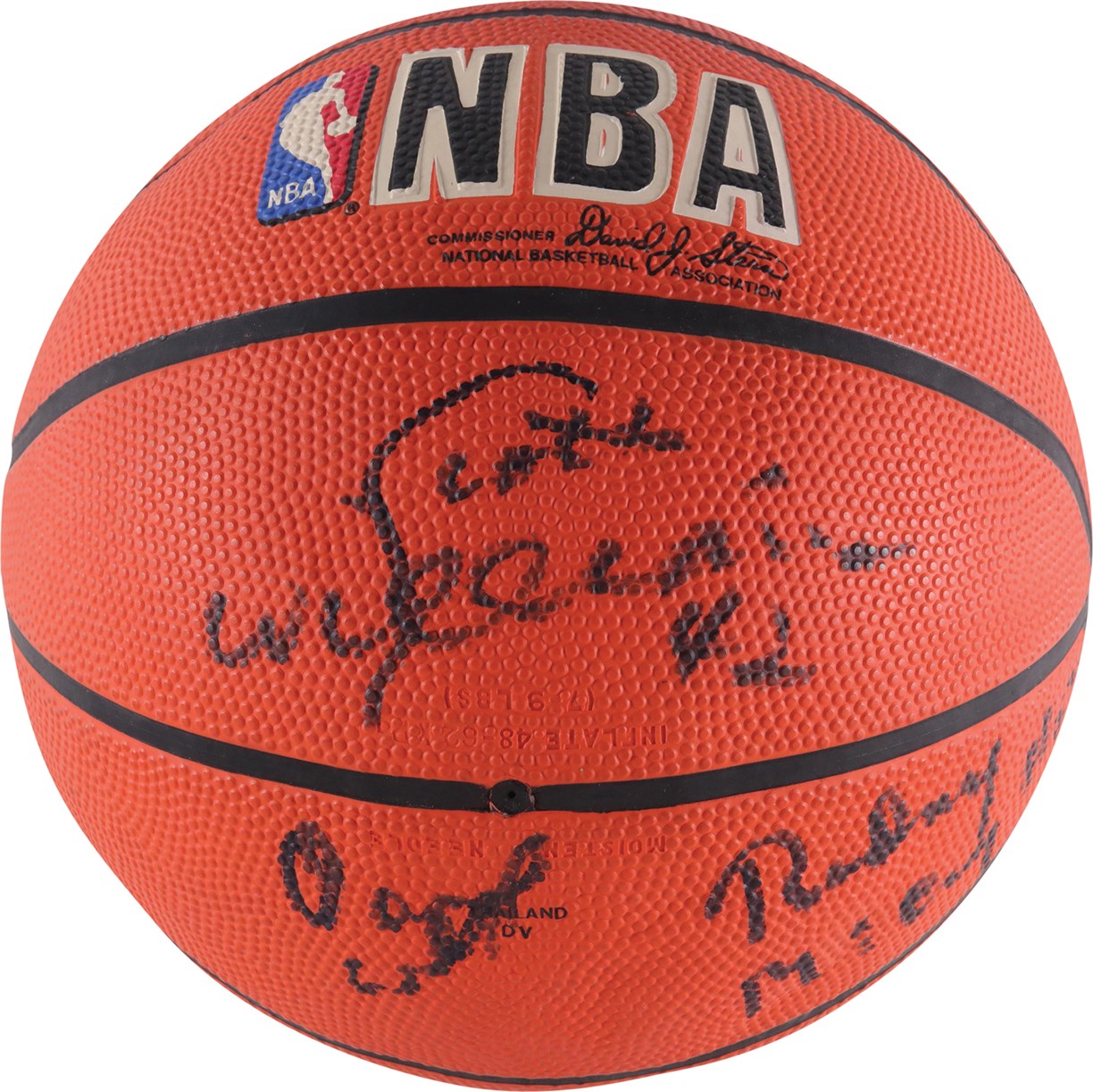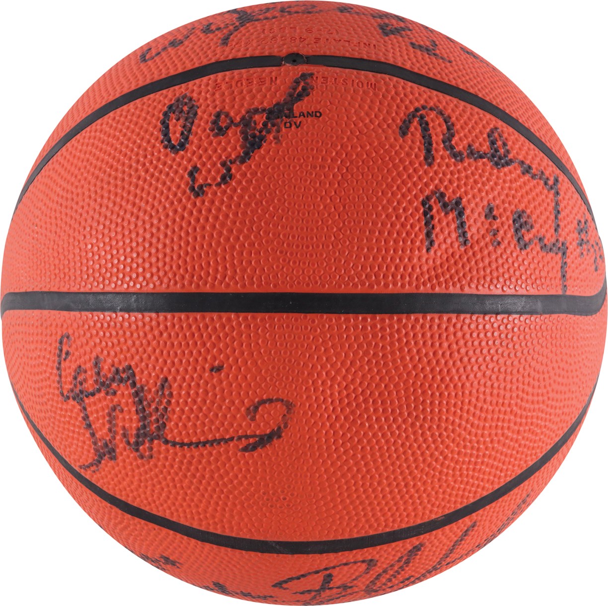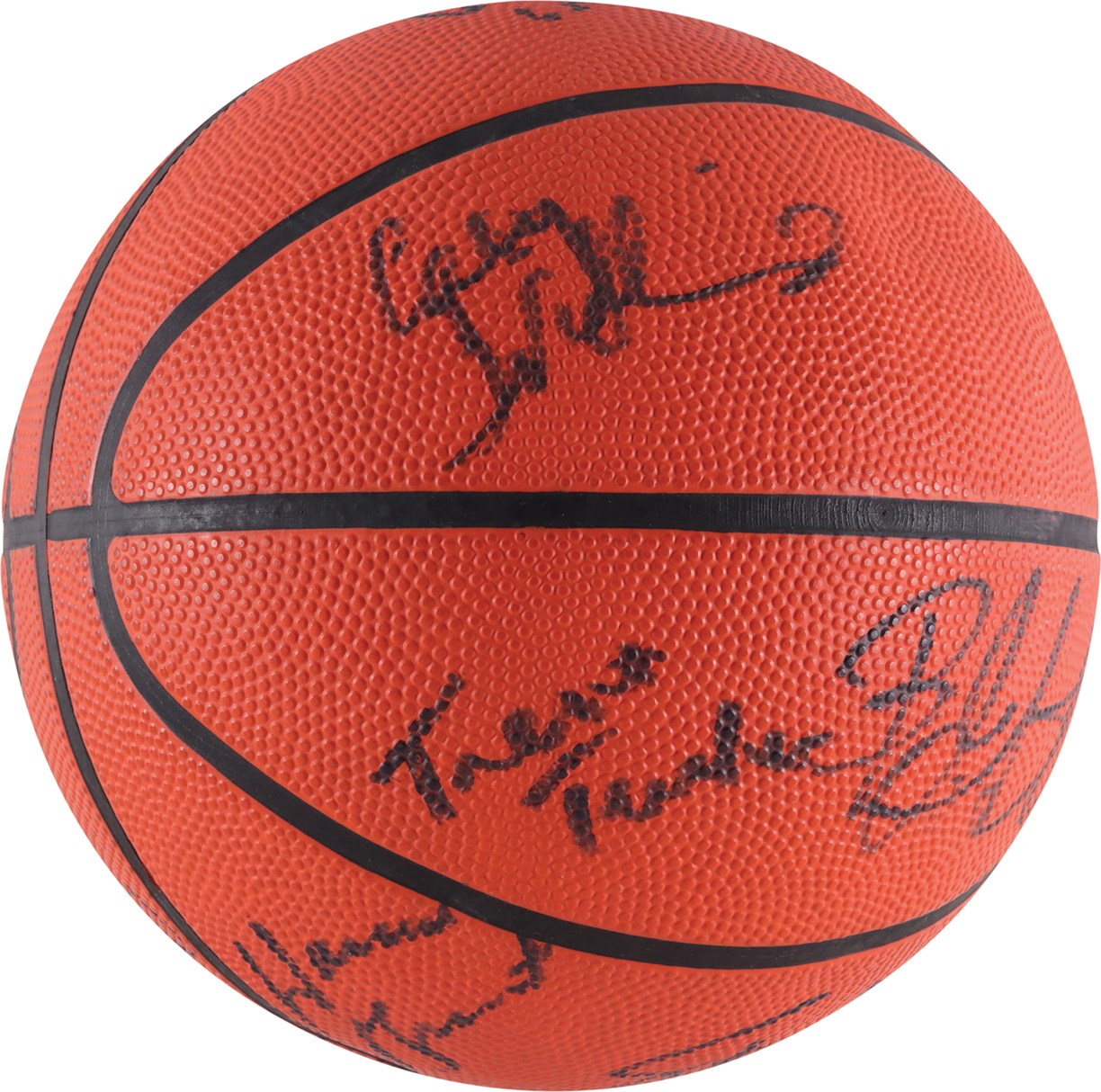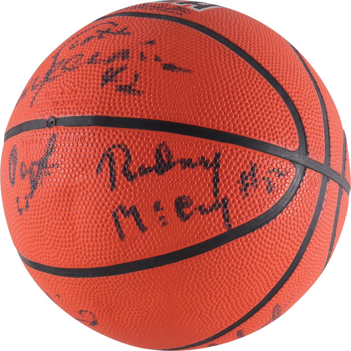 With targets on their backs yet again, the 1992-93 Chicago Bulls continued to thwart the competition enroute to a three-peat as NBA champions. From that glorious season comes this multi-signed Spalding basketball, featuring 10 autographs from the champs: Michael Jordan, Scottie Pippen, Horace Grant, Stacy King, Rodney McCrae, Trent Tucker, Scott Williams, Corey Willaims, Darrell Walker and B.J. Armstrong. The signatures are strong in black Sharpie.