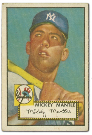 Another fantastic item -- the Holy Grail of post war sports cards from the scarce hi number series of Topps’ premier 1952 issue. This first ever Topps card of Mickey Mantle, this is a classic example of the New York Yankees’ all time great. The card exhibits mild corner wear, a strikingly vivid image, 55/45 left to right centering and 45/55 top to bottom centering, and has a super clean back with zero paper loss on the reverse. This EX example shows only small surface flaws on Mickey’s chin and the left corner of his mouth. A great card with incredible eye appeal. Still one of the most requested and desirable cards of the post war era, this would be a great addition to any collection.