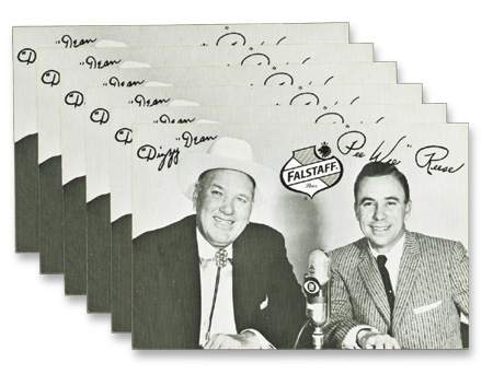 Large collection (all identical) of great HOFers, “Dizzy” Dean & “Pee Wee” Reese advertising for Falstaff Beer. 4x6” cards are fabulous in NRMT condition! Obtained from the Reese family.
