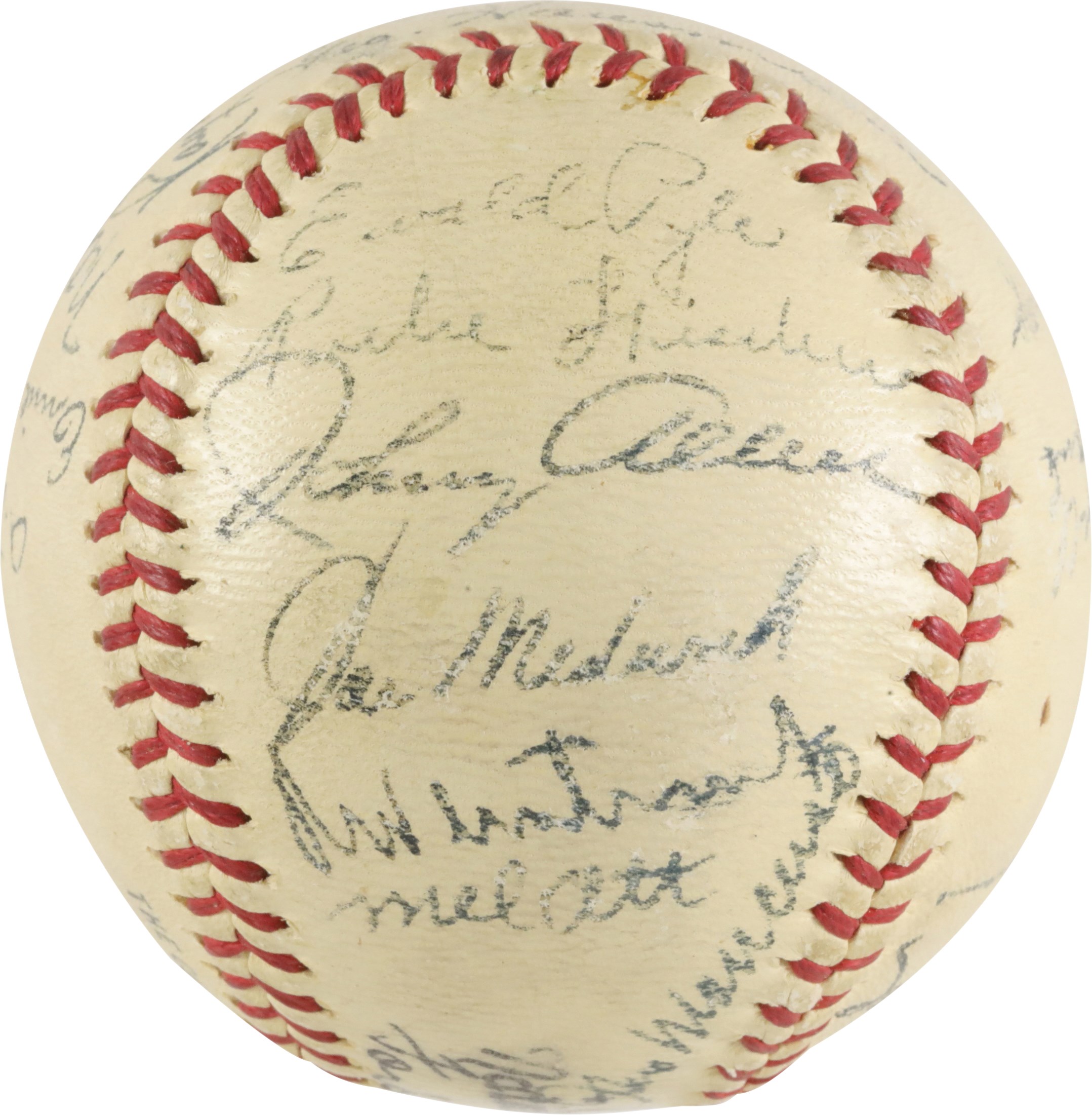 Lot # 712: ***1944 New York Giants Team Signed Baseball w/Mel Ott (PSA)