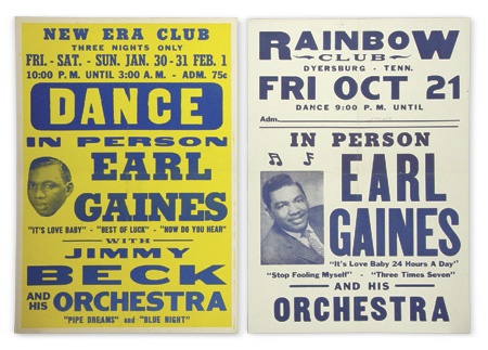 October 21, 1955 at the Rainbow Club in Dyersburg, Tennessee and January 30-31, 1959 at the New Era Club. Both picture this voice from the shadows. His first record, It’s Love Baby (24 Hours A Day) is listed on both. It went to #2 in 1955. Unfortunately, he never again achieved this level of success. Folds o/w EX.