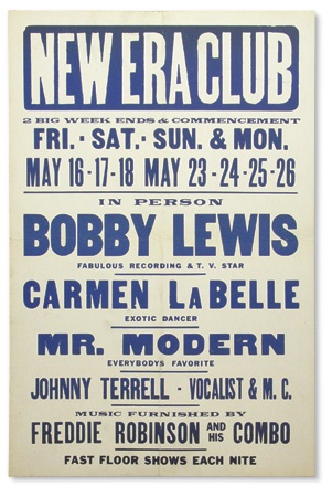 From the New Era Club comes “Fabulous Recording and T.V. Star” Bobby Lewis. The progenitor of Tossin’ and Turnin’ this is from his early days as a rock ‘n roller. The “T.V. star” refers to his appearances on Dick Clark’s American Bandstand. Folds, o/w EX. From the famed Alaska Find.