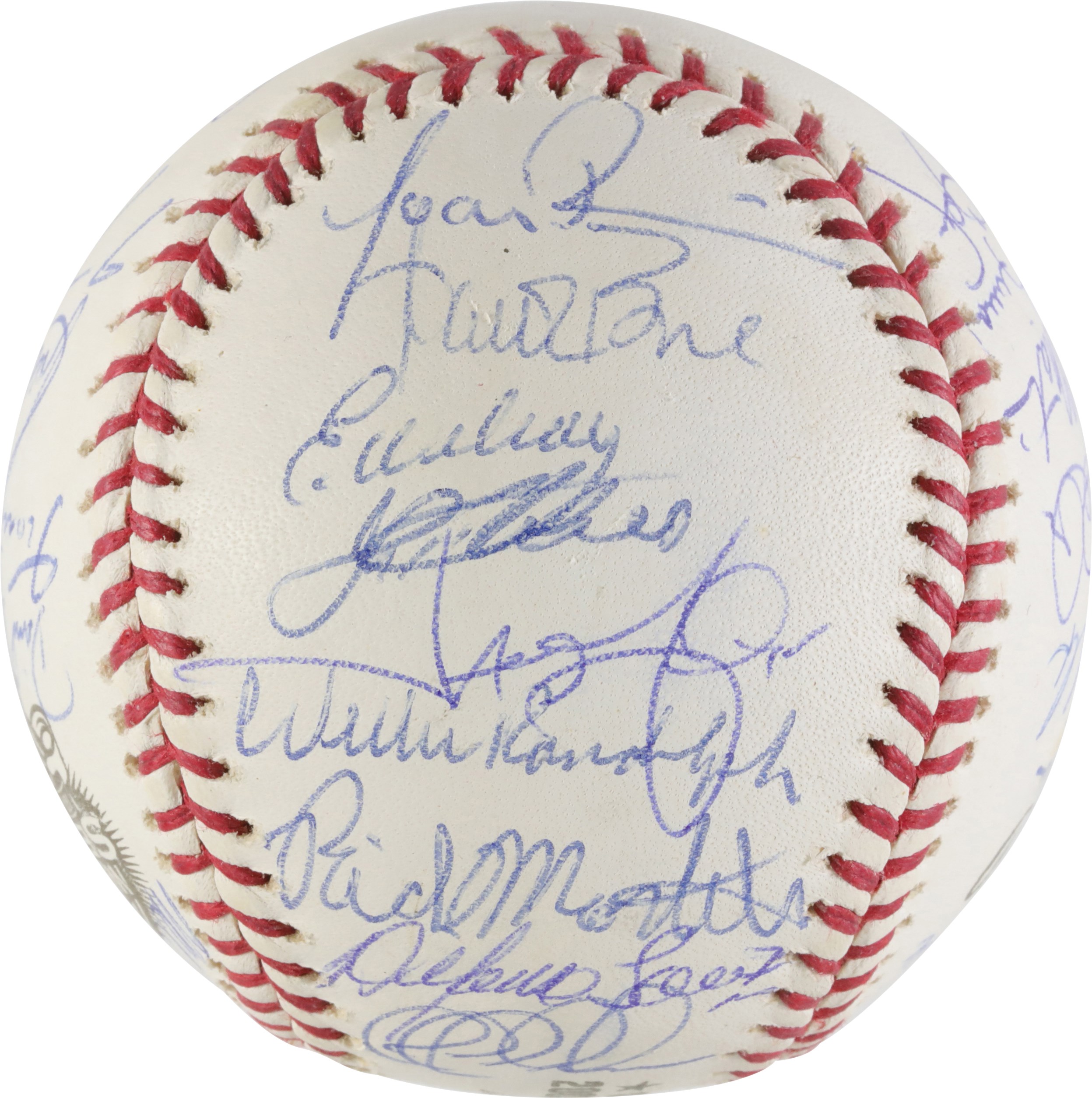 Lot # 724: ** FAILED PSA ** 2003 NY Yankee World Series Signed Baseball (28) PSA