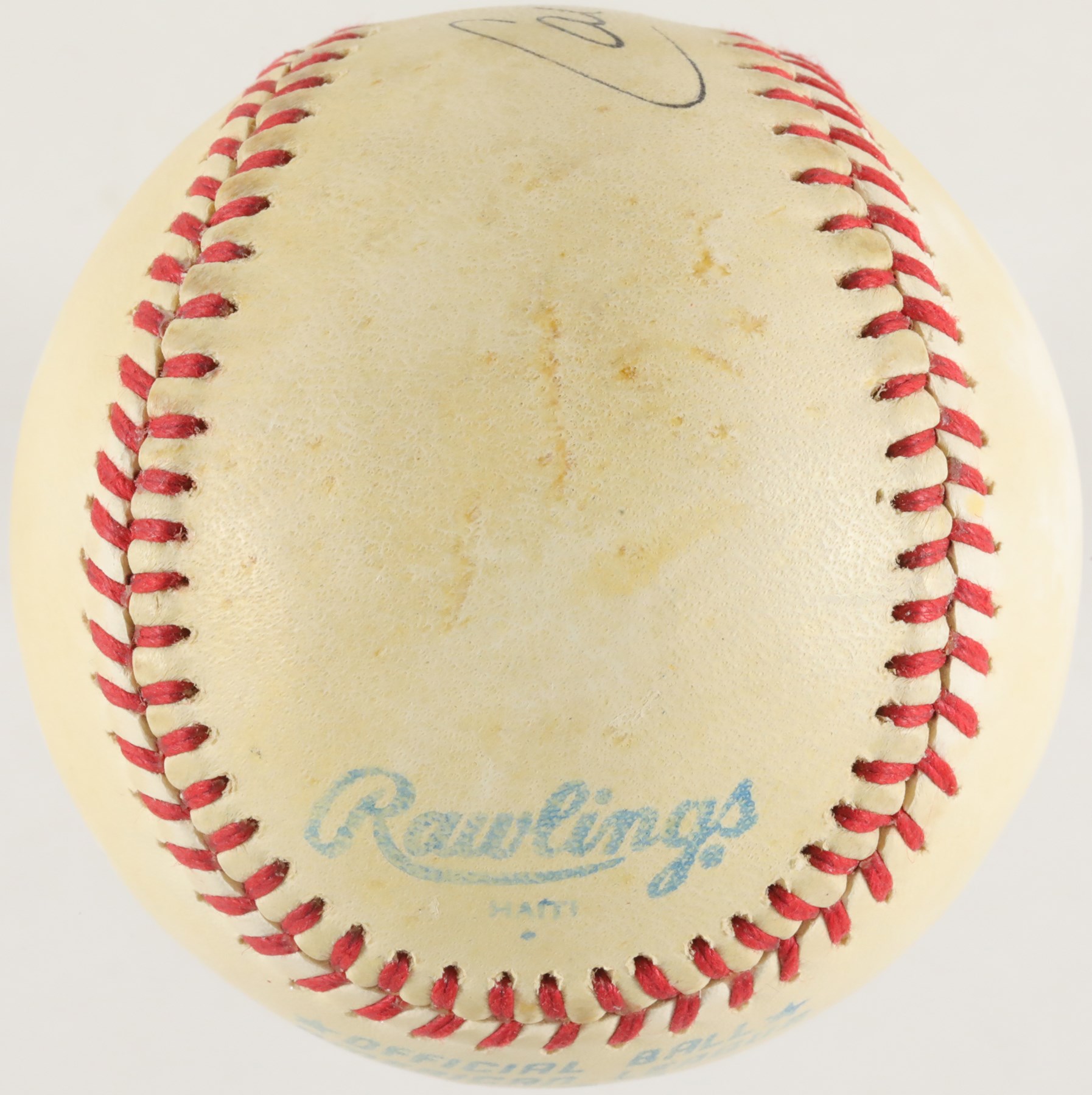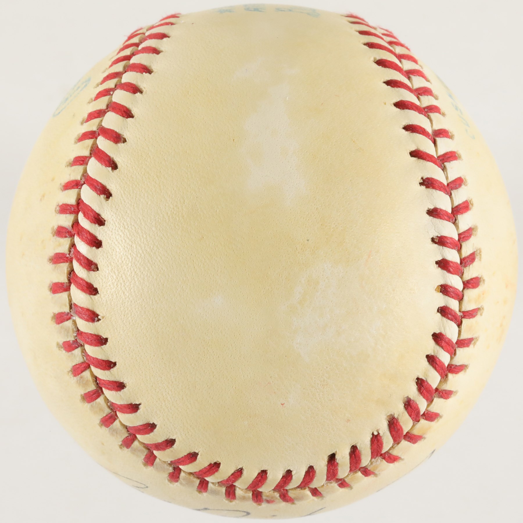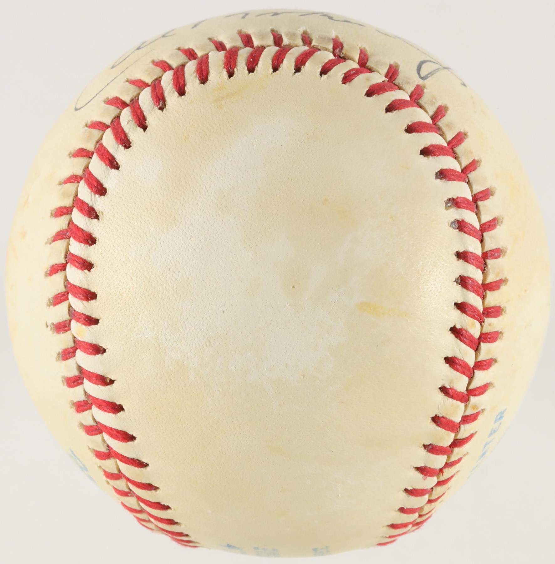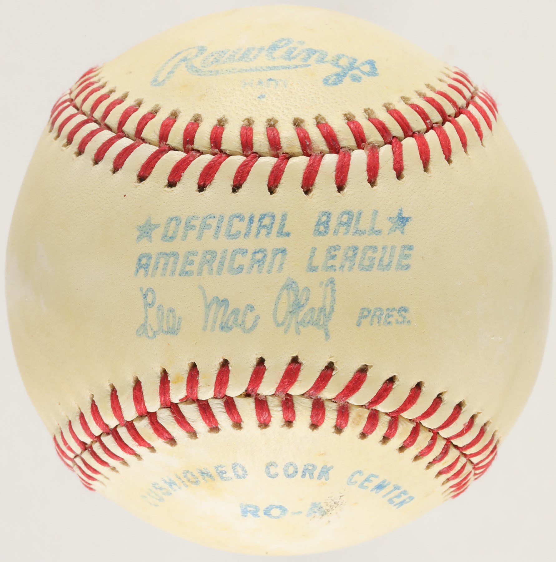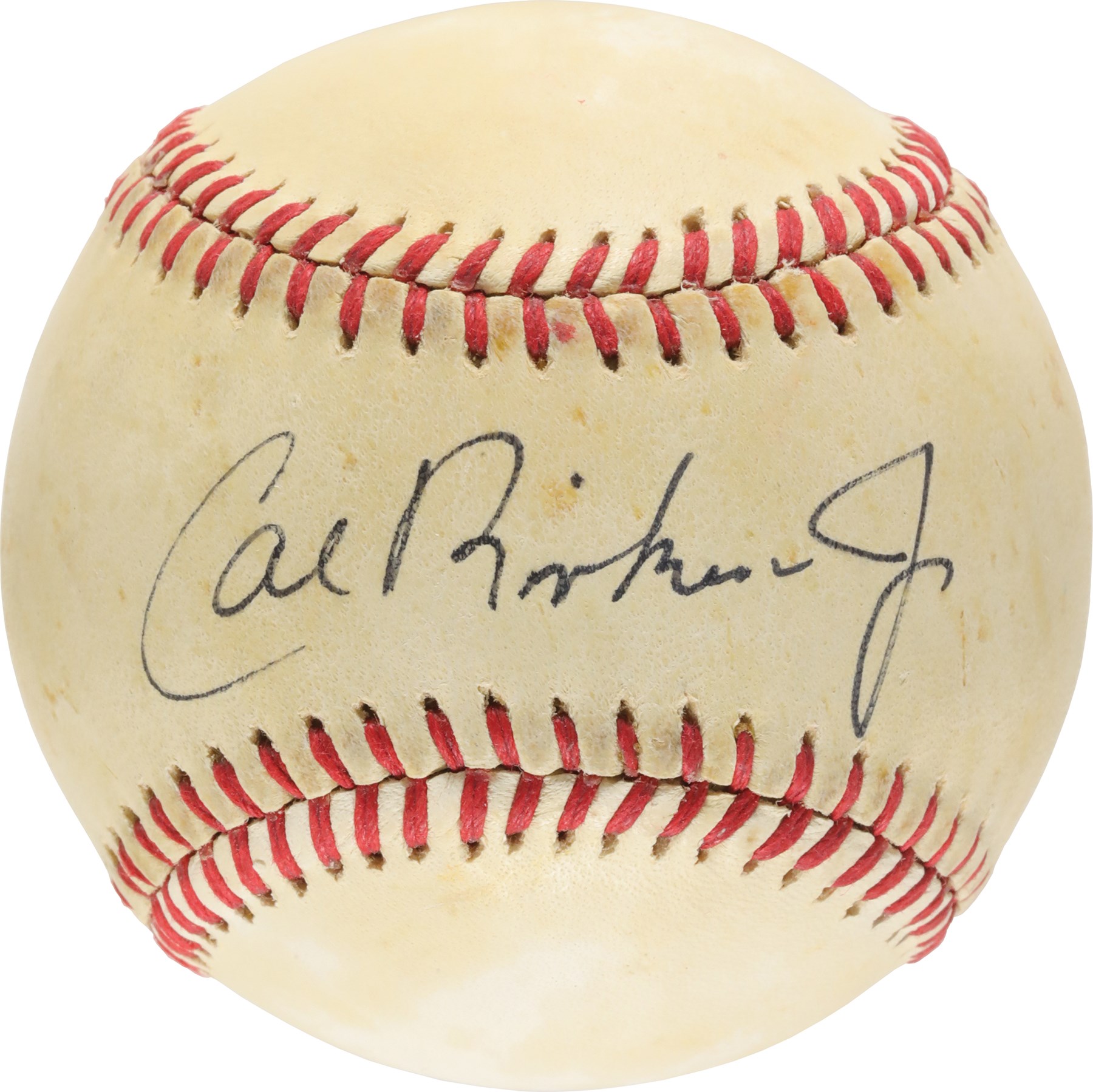 Cal Ripken Jr. early career signed baseball. This Official American League (MacPhail) baseball has been signed by Ripken in black ink. The baseball is in very good condition, and it shows signs of light use. Lee MacPhail was the American League President from 1974 to 1983, which means that this baseball is from 1983 or before. 1983 was Ripken's third year in the majors. He would play until 2001, and he set the MLB record for consecutive games played by playing in 2,632 straight games. Ripken played his entire career for the Baltimore Orioles and was inducted into the National Baseball Hall of Fame in 2007. A full LOA from PSA is included.