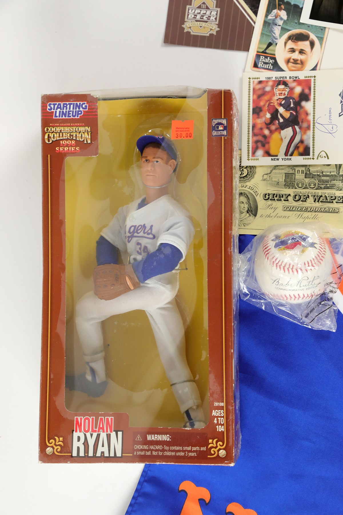 Houston Chronicle "Nation pays Homage as Kennedy Buried King Suspect Captured in London, 1976 Sport illustrated Sporting News Baseball's Back 1974, 3 1971 Sport Equipe, The New York Times The Greatest Moments in Mets History sealed, Sealed Terry Cashman's Talkin' Baseball album sealed. VHS Game 6,The Sound of Houston 45, 1975 Game 7 tape, Terry Cashman Greatest Baseball Hits, VHS 2003 Mets Inside Pitch, Shea Good buy celebration 9/28/09 CD, Joe Namath and 1986 Rusty Staub interview, VHS Clemens goes for 300, 3 Jesuit High School New Orleans Mardi Gras, Rusty Staub light switch cover, 3 inch Staub pin, Shea Goodbye sealed DVD, 6 VHS Tapes, Nolan Ryan Rangers Starting Line up Large Rangers, 1999 Tony Perez Marlins pants, Met banner signed by 5, 1983 Babe Ruth First Day of issue envelope, 1983 University of Texas Centennial yearbook, Upper Deck The Game Belongs to All of Us, But History Can be yours, 100th University of Baseball 1895-1995 with Ruth Signature on sweet spot Stamped, Super Bowl XXI signed by Phil Simms, # Rusty Staub T Shirts and 2 Sweat Shirts . @ Additional autos 1 3x5 ans a signed sheet of paper Signed January 19, 1989.