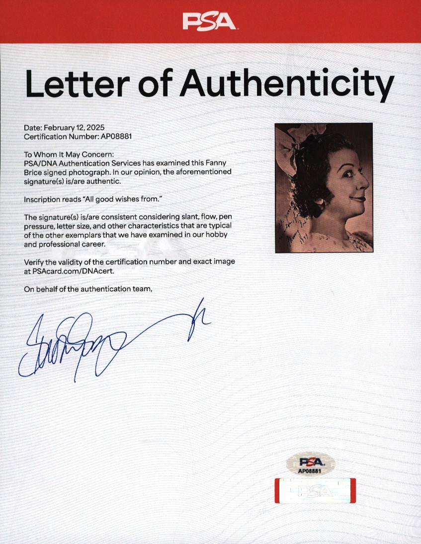 Lot # 1128: Fanny Brice Signed 8x10" Photo