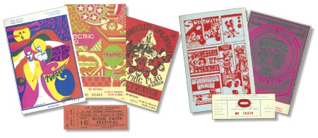 Presented by promoter, Jim Salzer at various Santa Barbara, California venues, these unused tickets feature many of the best sixties era bands: Led Zeppelin, Blind Faith, Yardbirds, Big Brother, Traffic, Eric Burdon, Blue Cheer, The Nazz, Steppenwolf and more! NRMT condition.