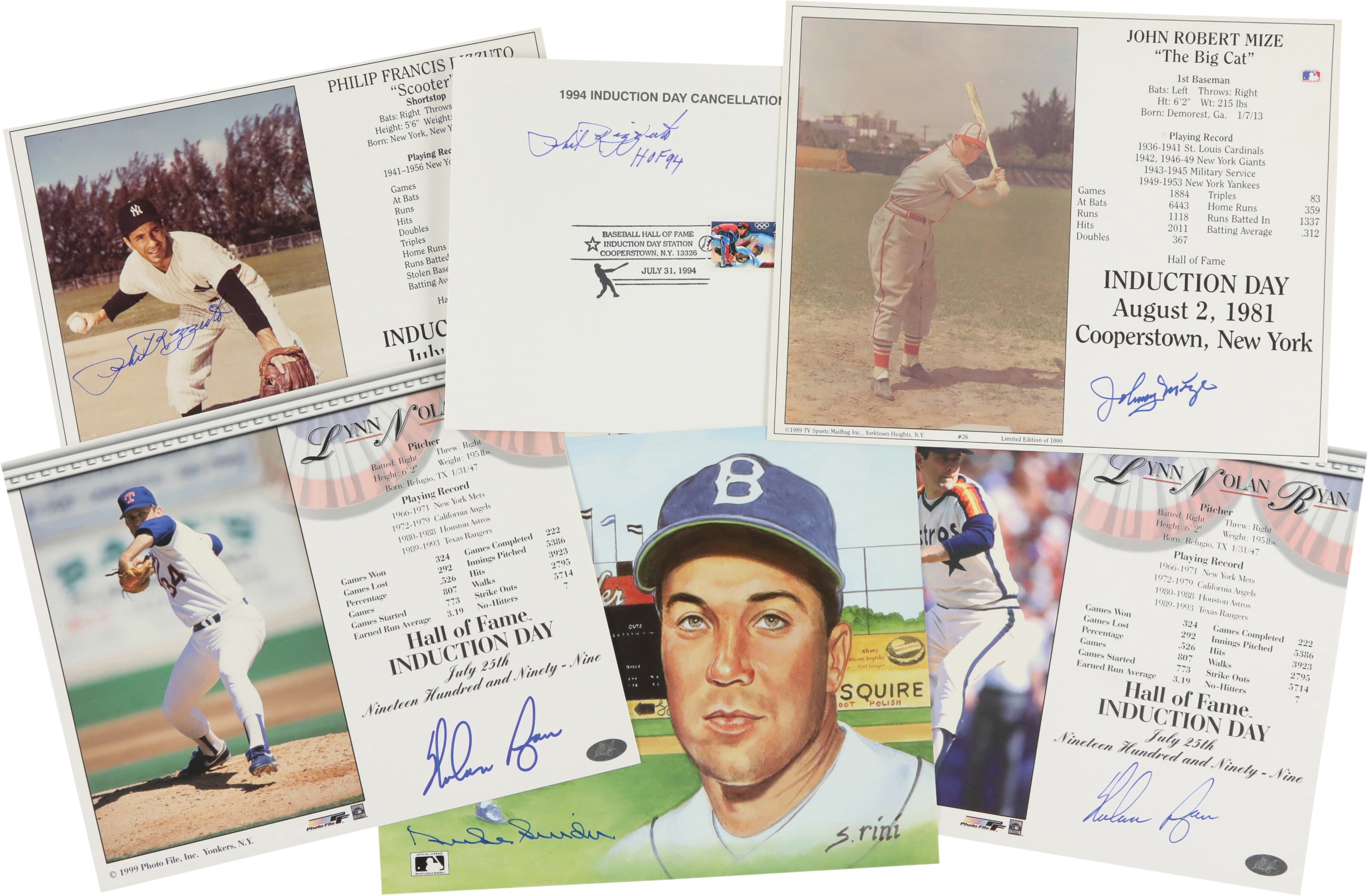 10x8" Hall of Fame Induction Cards (5): Mize, Musial, Rizzuto, and Ryan (2 different examples).