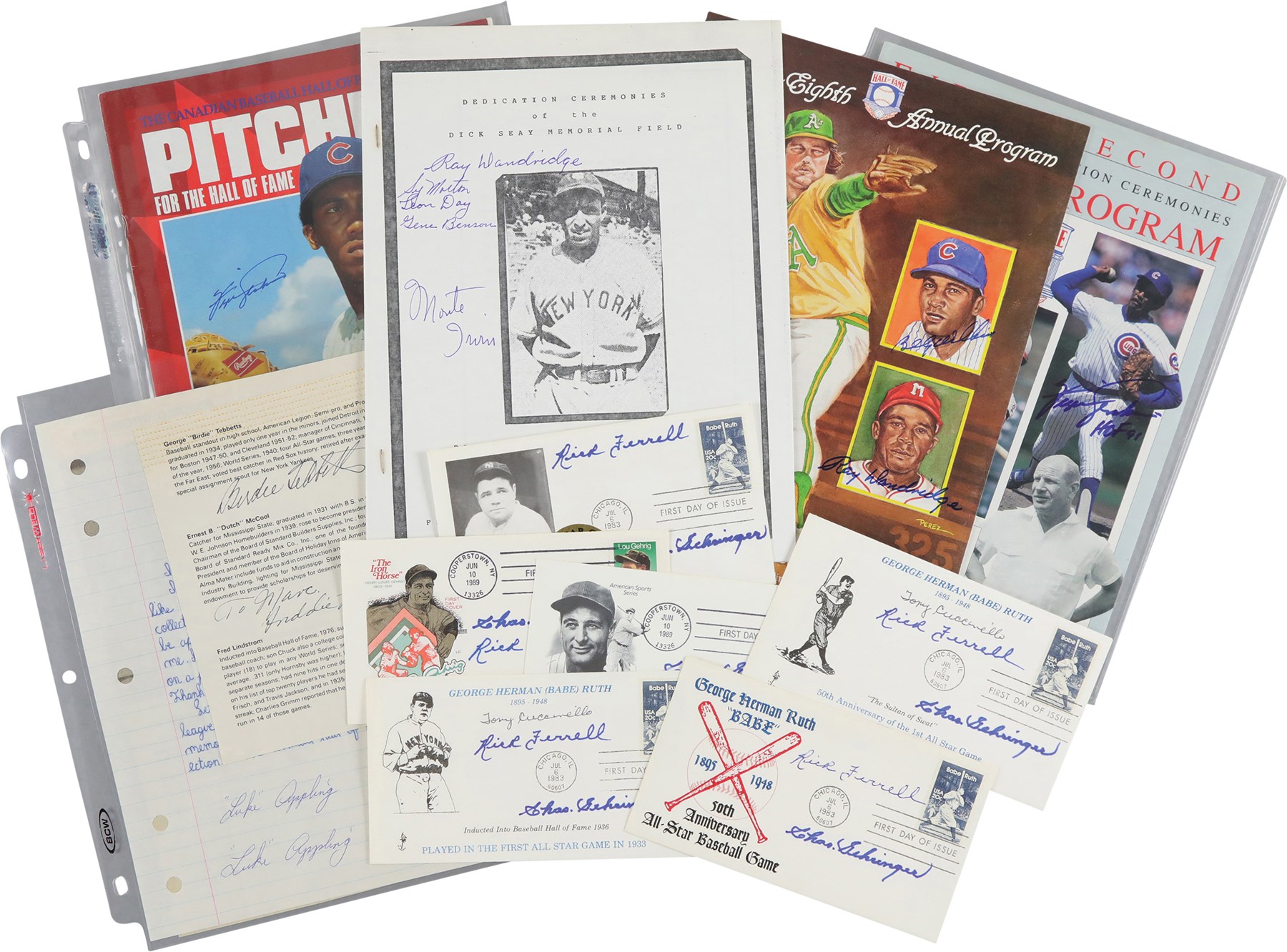 Multi-Signed Items (10): 1987 Baseball Hall of Fame Induction Program (B. Williams and Dandridge twice); 1988 Dick Seay Memorial Field Dedication Program (Dandridge, Irvin, Day, Sy Morton, and Gene Benson); 1991 Baseball Hall of Fame Induction Program (Perry and Jenkins); partial magazine page (Lindstrom, Yastrzemski, and Birdie Tebbetts), Four Different First-Day Covers (each signed by Gehringer and R. Ferrell); and Two Different First-Day Covers (each signed by Gehringer, R. Ferrell, and Tony Cuccinello).