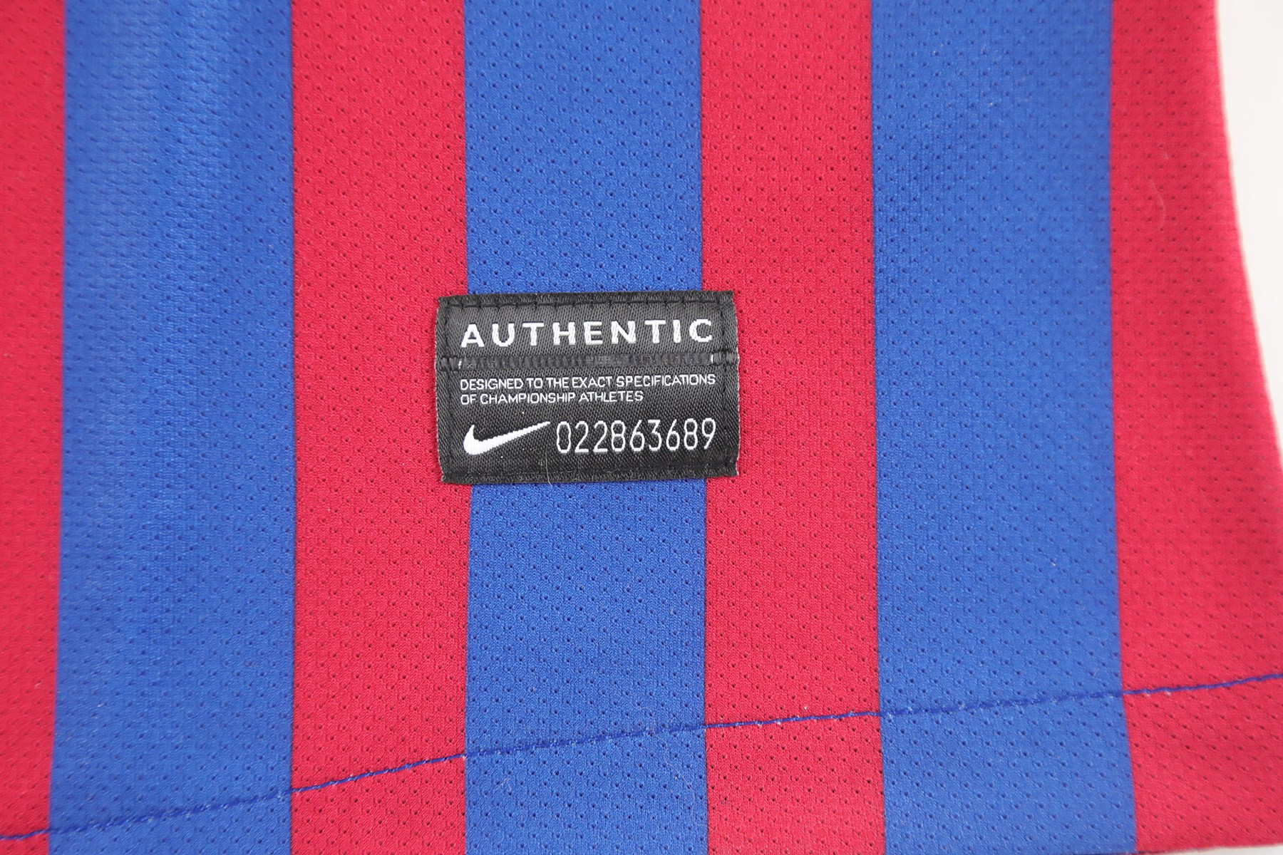 Presented is a 2011-12 Lionel "Leo" Messi match issued, vividly striking Barcelona jersey from a year in which the forward won the coveted "Ballon d'Or," the "Golden Ball." Messi has won the Ballon d'Or a record eight times, and he is the only player to have been awarded the Ballon d'Or for his play on three different club teams. In addition, Messi is also the only player to have been awarded the Ballon d'Or in four consecutive years. In the actual 2012 calendar year, Messi scored an amazing 91 goals, surpassing Gerd Muller's all-time single year record of 85. In the calendar 2012 year, Messi scored 79 tallies for his club team, Barca, and the Argentine forward added 12 goals for the Argentine National Team. Messi, only 5'7", is also a superb passer, and he is known for his slithery dribbling and his quick bursts of speed. Messi was the star of the 2022 Argentine World Cup Champions. Lionel is currently the captain of both the Major Soccer league's Inter Miami squad and the Argentine National team. Messi, with 713 goals from club play and 103 with the Argentine National Team, has 813 total goals, and at the present time trails only Cristiano Ronaldo, the Portuguese star, in all-time men's World goal scoring, by 28 goals.