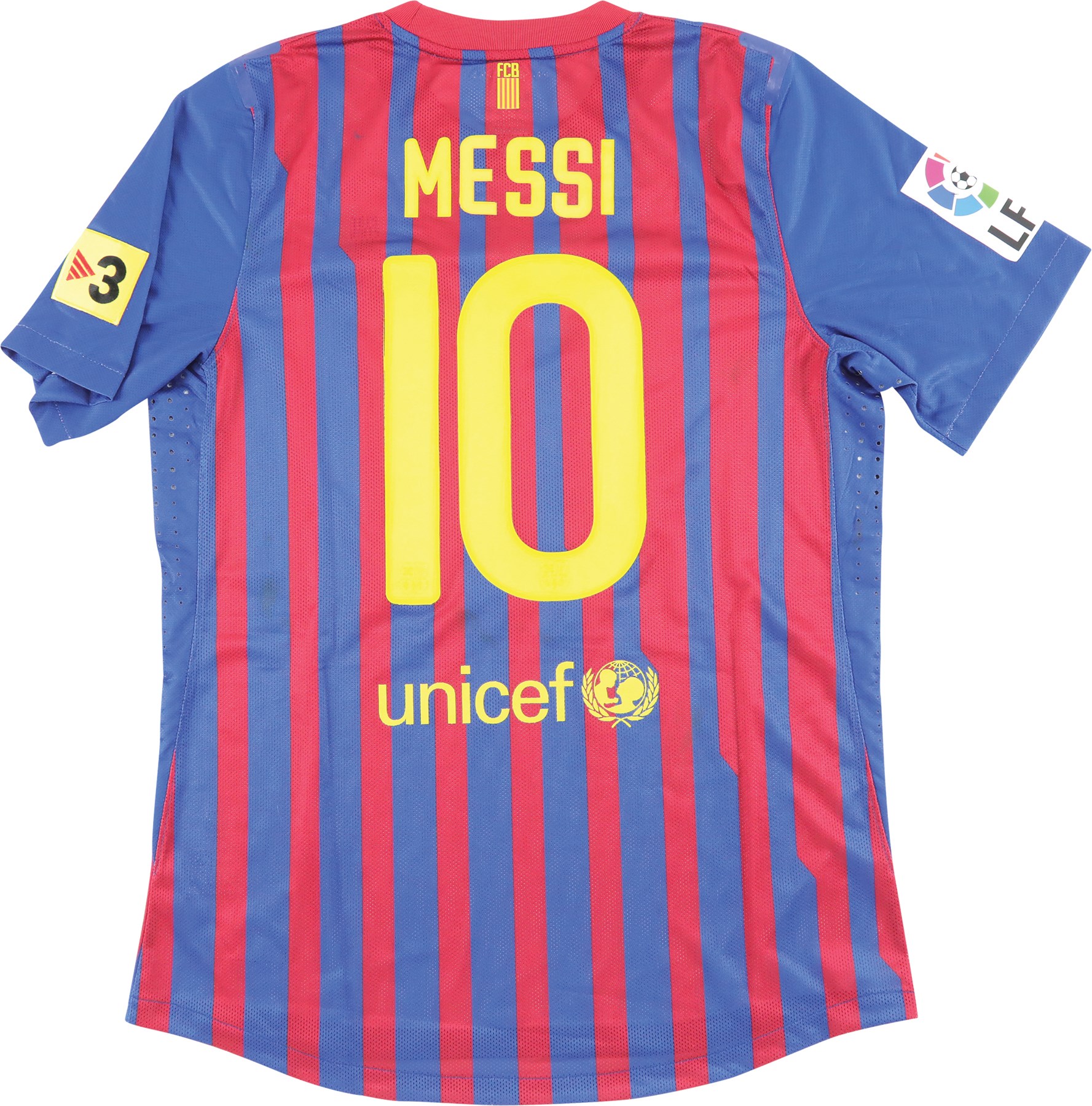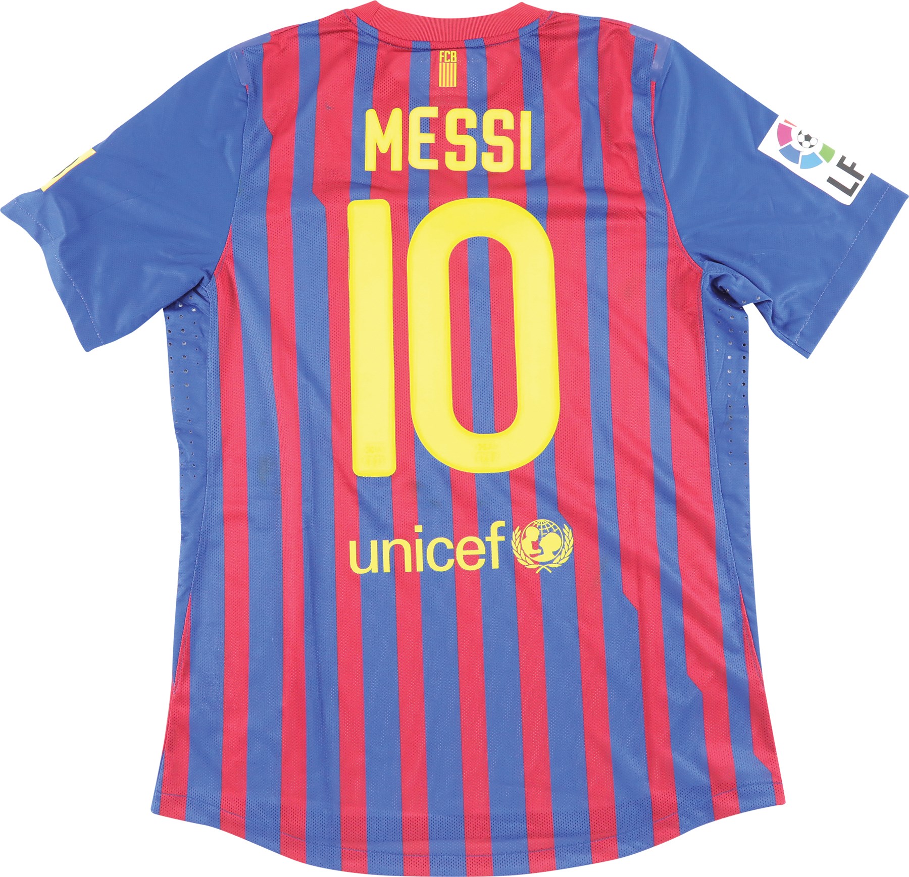 Lot # 2177: ** MOVED FROM 2025 SPRING POP-UP ** 2011-12 Lionel Messi Barcelona Match-Issued Jersey - Ballon d'Or "92 Goals" Season
