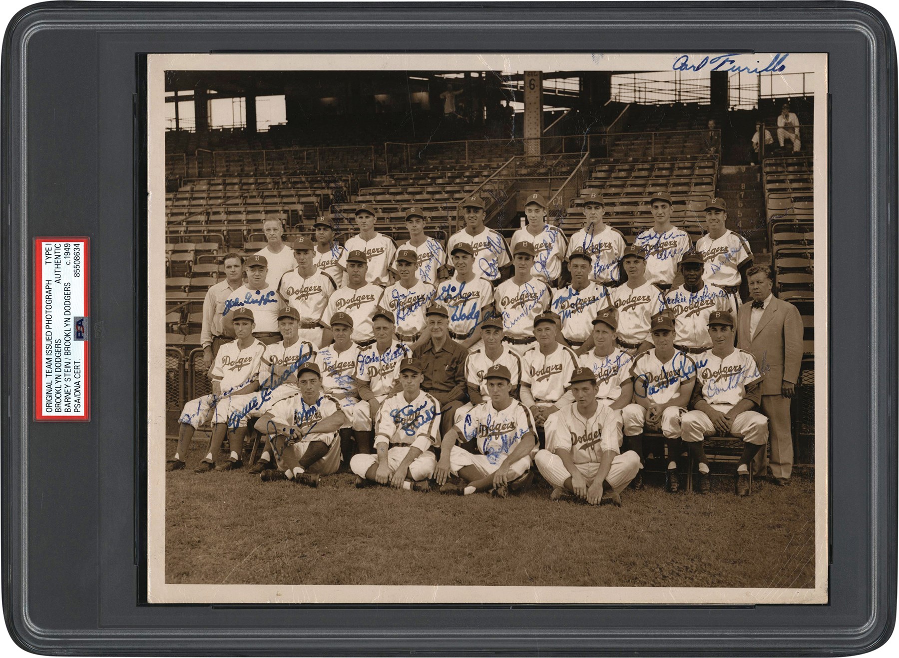Lot # 435: 1949 Brooklyn Dodgers Team Signed Original Photograph w/Jackie Robinson - 24 Autos - Zero Clubhouse (PSA Type I - PSA Auto Auth)