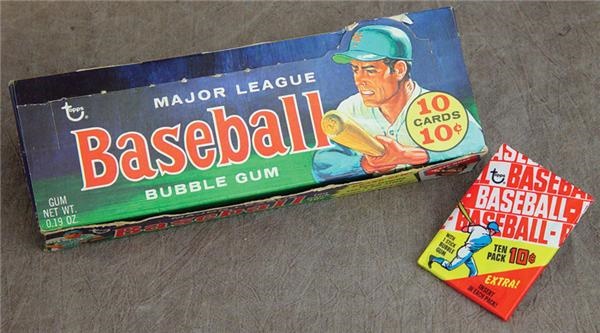 Wow! These are hardly ever seen. The box contains 24 packs with 10 cards per pack (one pack opened due to age). Box is from the fifth, sixth, and seventh series and will yield card numbers 460-720 in the 1970 Topps baseball set. The pack that opened had cards from all three different series. Look for high-numbers and stars such as: Aaron, Stargell, Gibson, Rose, Mays, Banks, Kaline, Bench, F. Robinson, Nolan Ryan, etc. This box is loaded with grading possibilities! Packs average NRMT to NM-MT and the display box is EX-MT. One of a kind.
