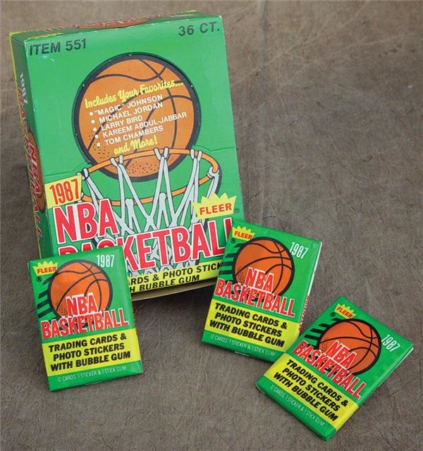 Somebody pinch me, I must be dreaming! Second year cards from ’92 Olympic teammates: Jordan, Ewing, Malone, Barkley, Mullin, ‘Nique, and Drexler, not to mention ‘Nigerian Nightmare’ Hakeem Olajuwon. Thirty-six wax packs (Mint), each with twelve cards and one sticker, await you inside this fresh looking display box (Mint). Perfect for grading or saving!