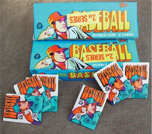 Boxes contain 36 packs with 8 cards per pack. Both are from the second series and will yield card numbers 264-525 in the 1972 OPC set. Look for stars like Jim Palmer, McCovey, Aaron regular & In Action, Clemente regular & In Action, Carlton, Bench regular & In Action, R. Jackson regular & In Action, Munson regular & In Action, Seaver regular & In Action, Ted Williams, etc. Display boxes are EX. Packs are NRMT to NM-MT.