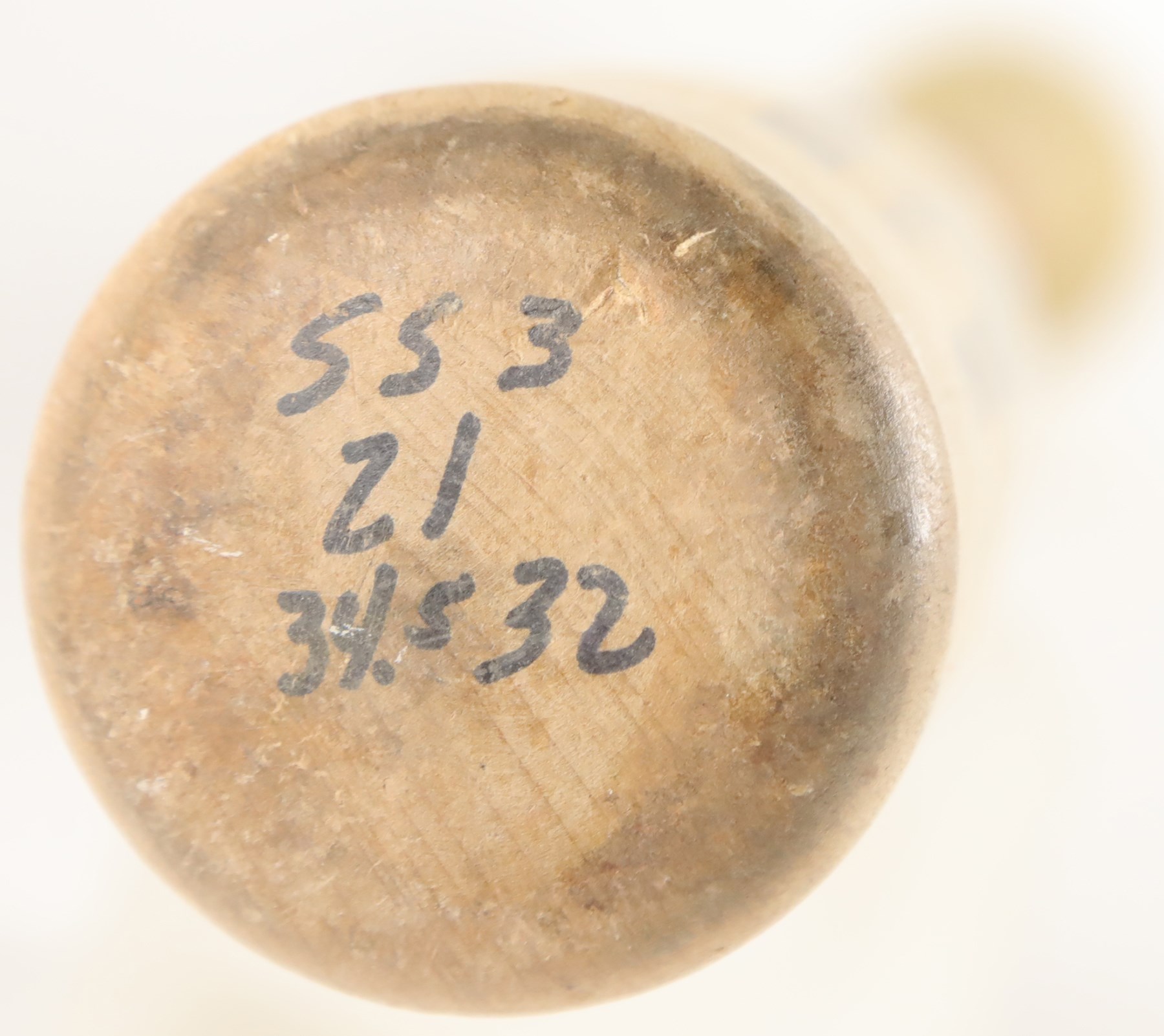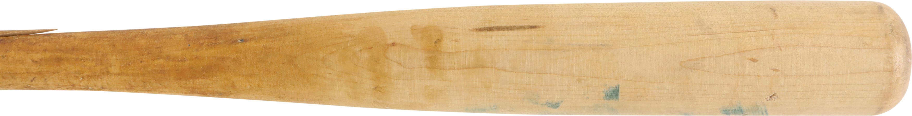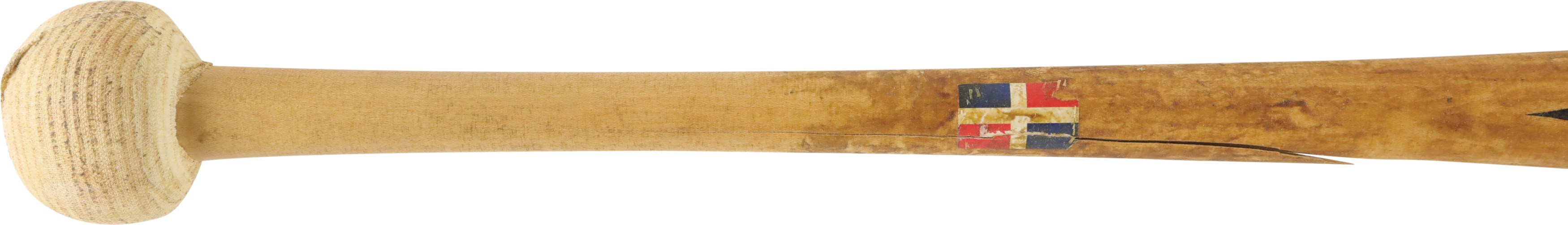 2004 Sammy Sosa Chicago Cubs signed game used bat with inscription. Easton model SS3 maple bat measures 35.25" and weighs 36.2 ounces. Outstanding use is evident including a handle crack, clear ball ink impressions, and pine tar throughout the handle; the pine-tar also covers a stamp or sticker of the flag of the Dominican Republic, which is split through as part of the crack. The knob bears Sammy's distinctive white cloth tape bubble, and written in black marker on the barrel end is "SS3 - 21 - 34.5 32" (note that the last numbers are bat measurements before the addition of the knob tape, as reflected in the LOA). It is autographed between barrel stamp and trademark in crisp 8-9/10 blue Sharpie along with his #21; written below is "Game Used 2004." That 2004 season was the last of Sosa's legendary 13 yrs in the Windy City, during which he accumulated 545 of his 609 career homers. Comes with full LOA from PSA, with the bat earning a grade of PSA/DNA GU 9, and comes with separate PSA LOA for the autograph as well as a Sosa holo.