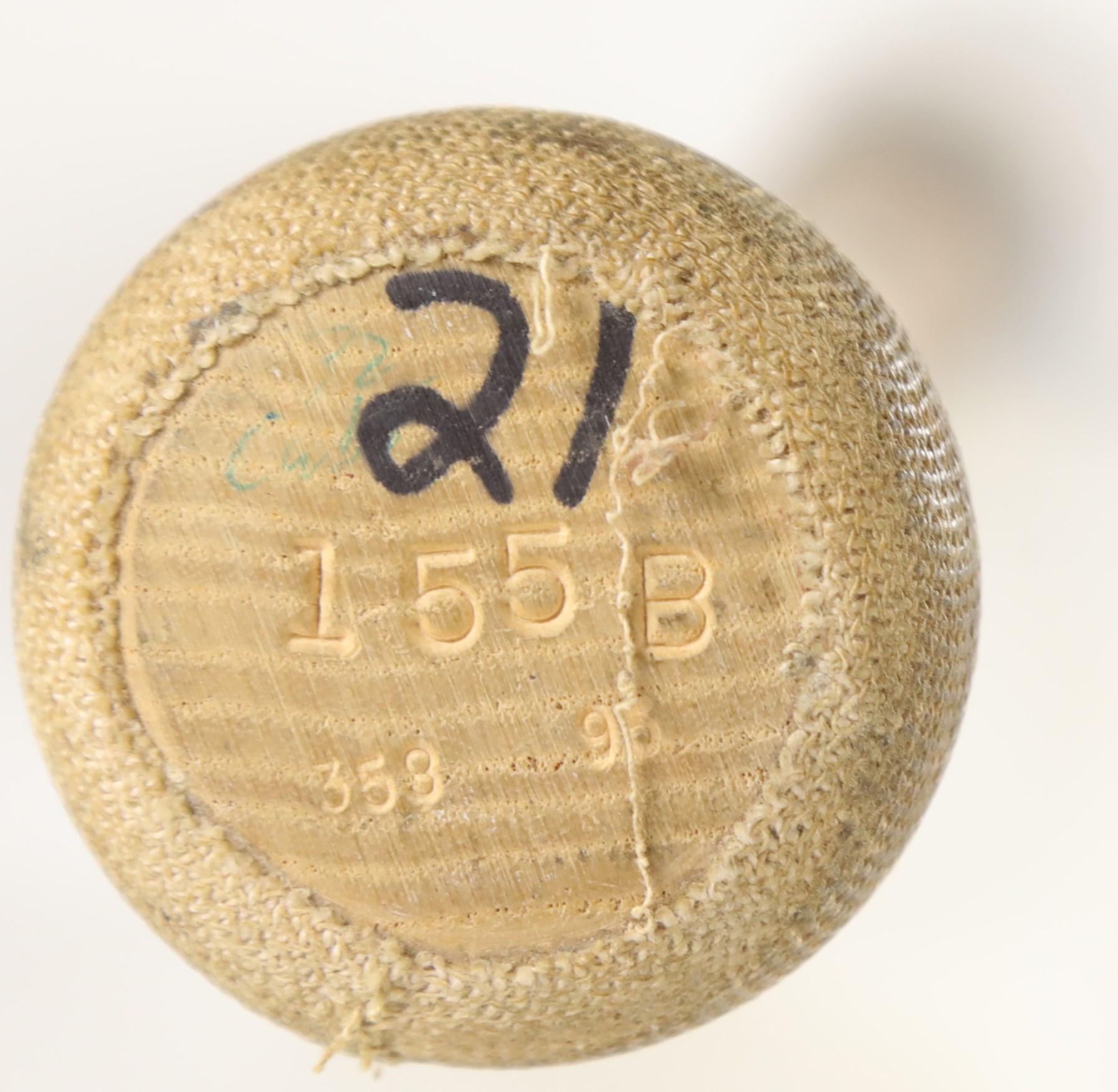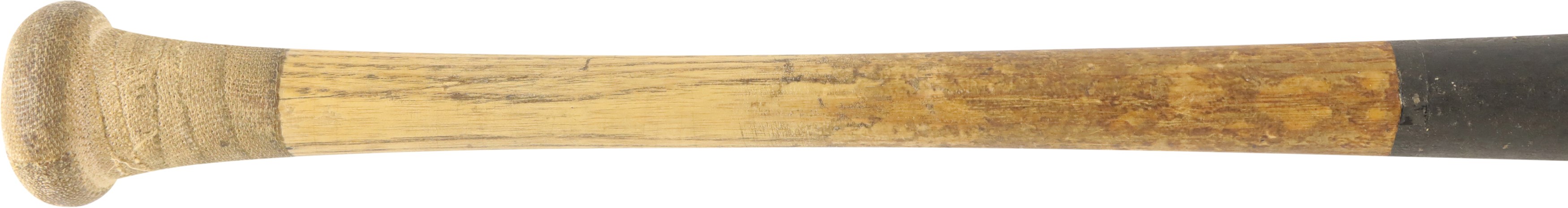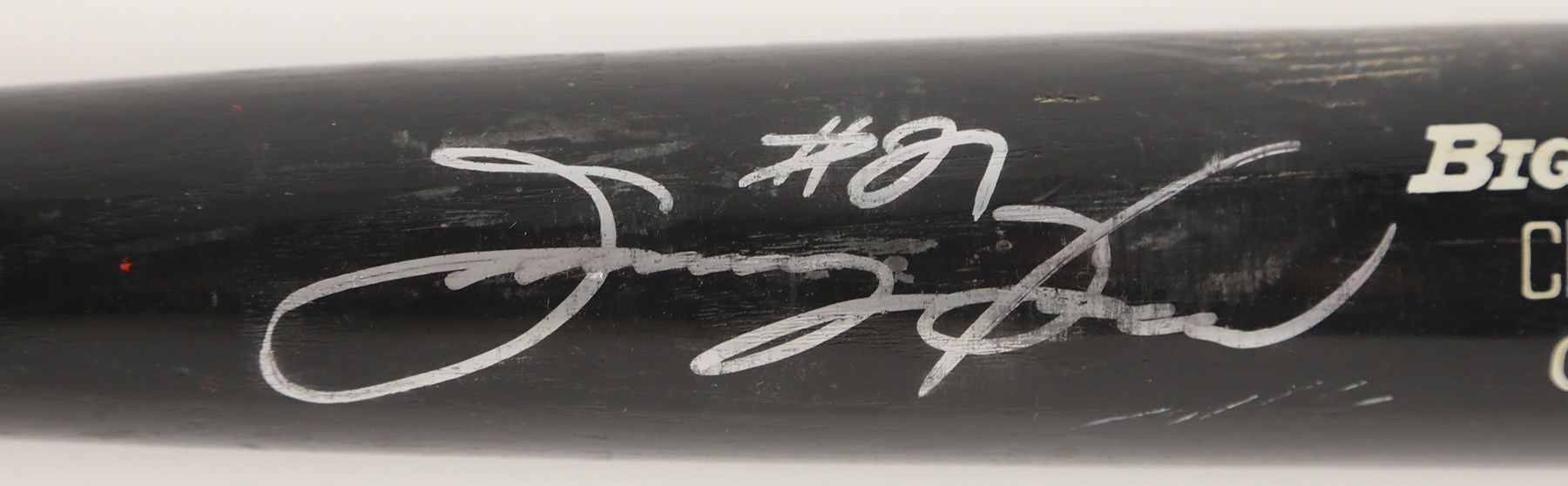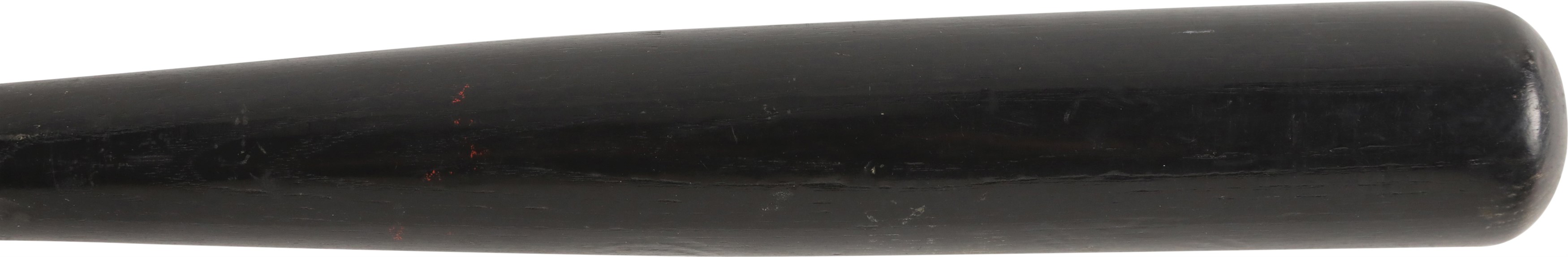 1995 Sammy Sosa Chicago Cubs signed game used bat. Natural handle and black barrel Rawlings/Adirondack model 155B ash bat measures 34.0" and weighs 30.8 ounces. Uncracked specimen displays moderate use with light barrel wear, pine tar on handle, and white cloth tape as the base of the handle extending to the knob. Number 21 is written on the knob in black Sharpie, and stamped is "155B 358 95." It is autographed between trademark and barrel stamp in 7/10 silver Sharpie along with his uniform number. A 26-year old Sosa was just entering his prime in the '95 season in which this bat was wielded, establishing new career highs with 36 homers and 119 RBI. That was only a whisper of what was to follow; over the next seven seasons he AVERAGED over 52 homers and 132 RBI, earning five consecutive Silver Slugger awards. Comes with full PSA LOA, with the bat earning a grade of PSA/DNA GU 8, as well as a separate LOA from PSA for the signature.