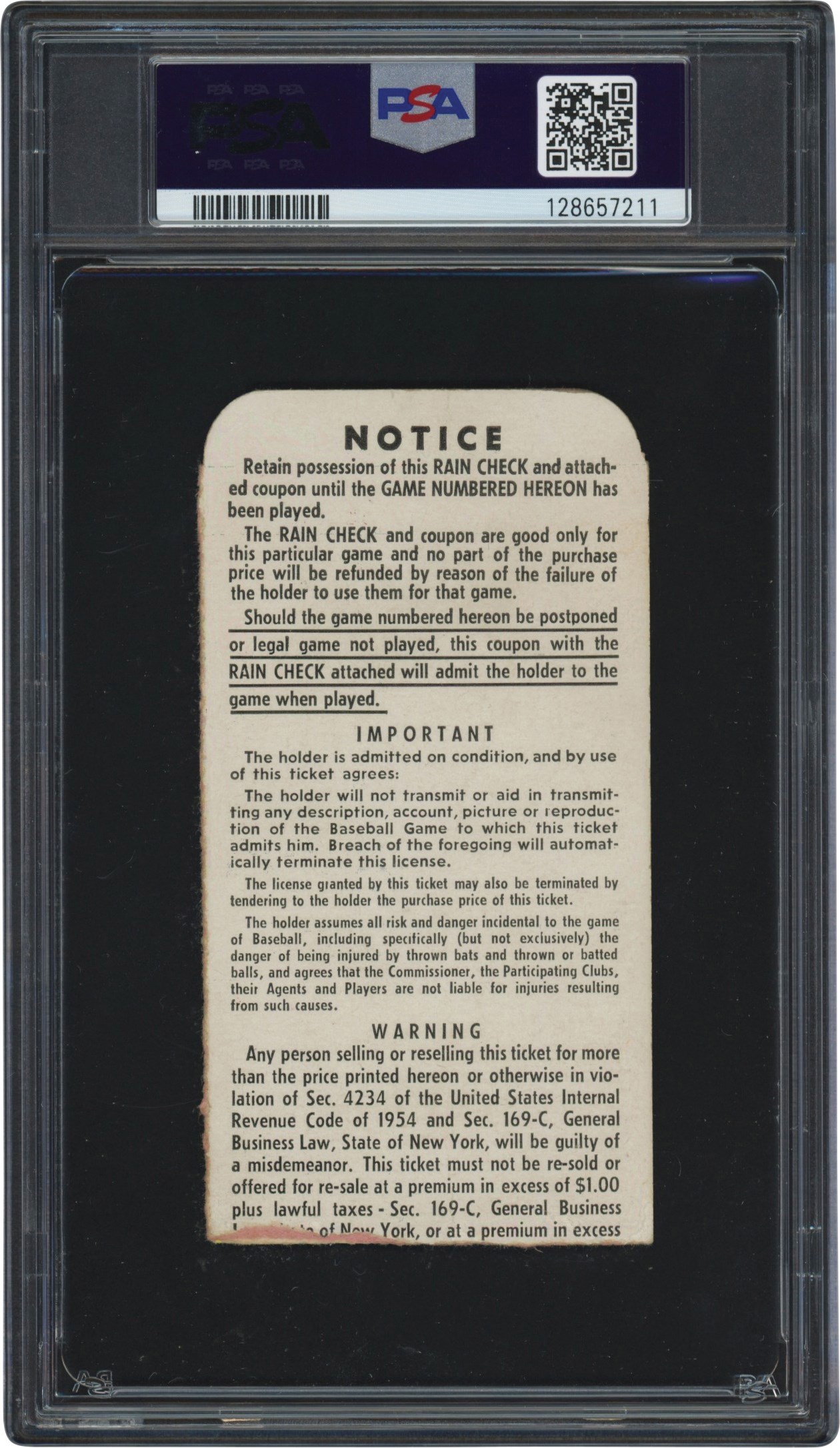 Lot # 664: 1956 Don Larsen World Series Perfect Game Ticket Stub PSA VG-EX 4