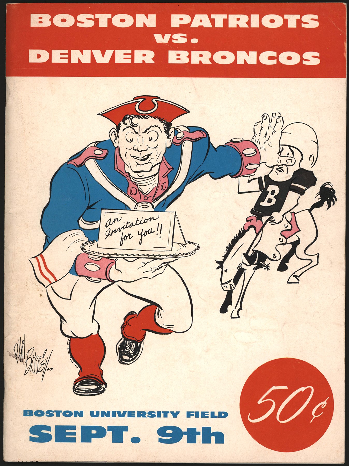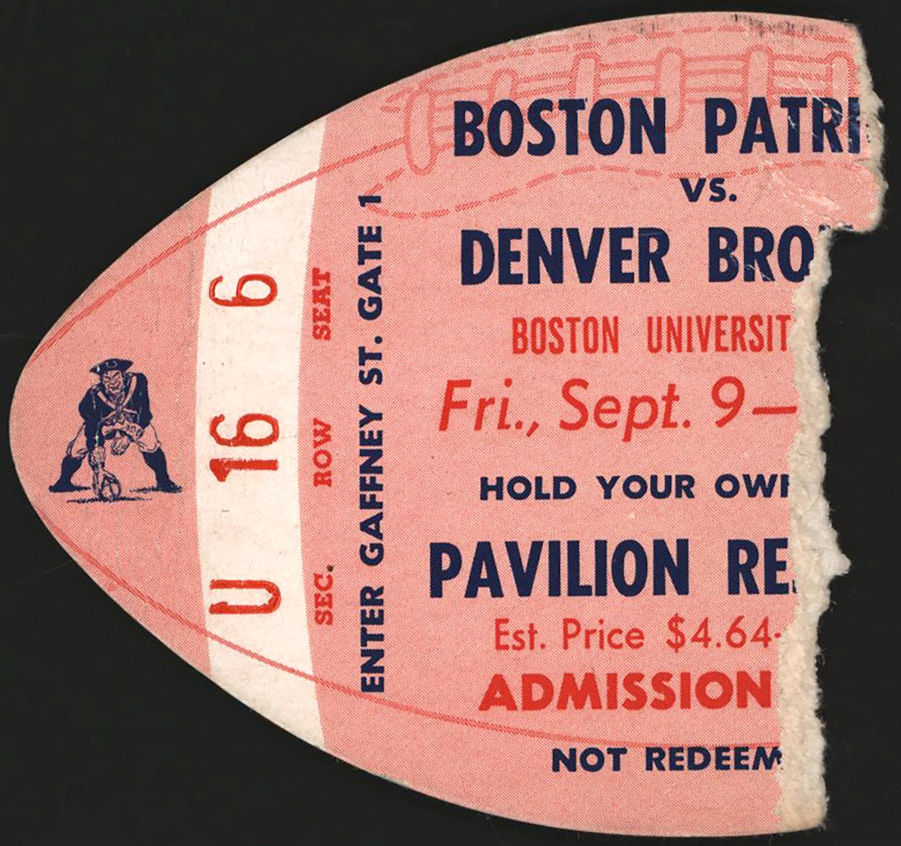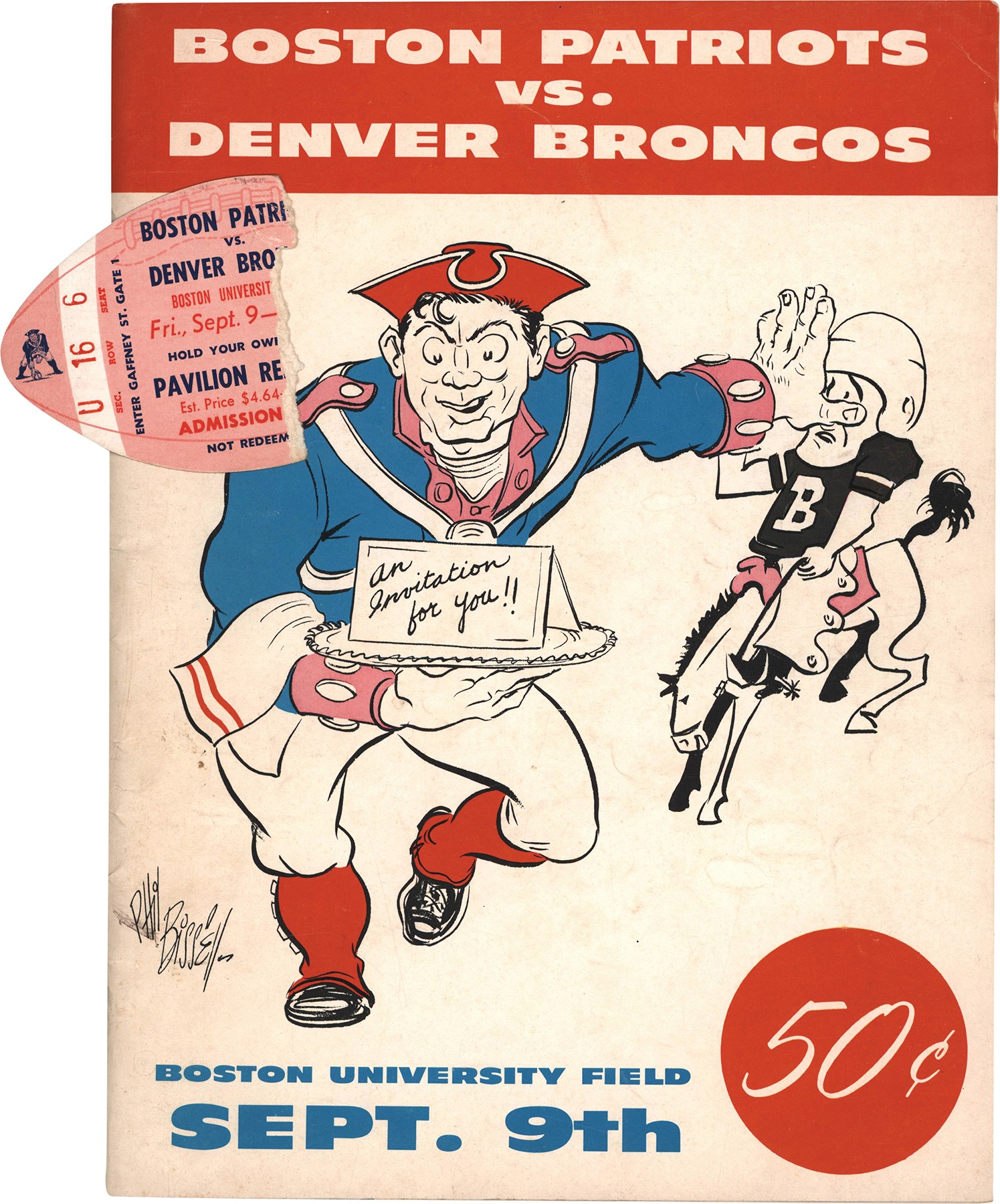 Lot # 845: 1960 Boston Patriots vs. Denver Broncos AFL Program & Ticket Stub - First Game in AFL History