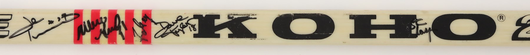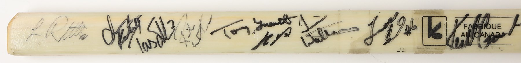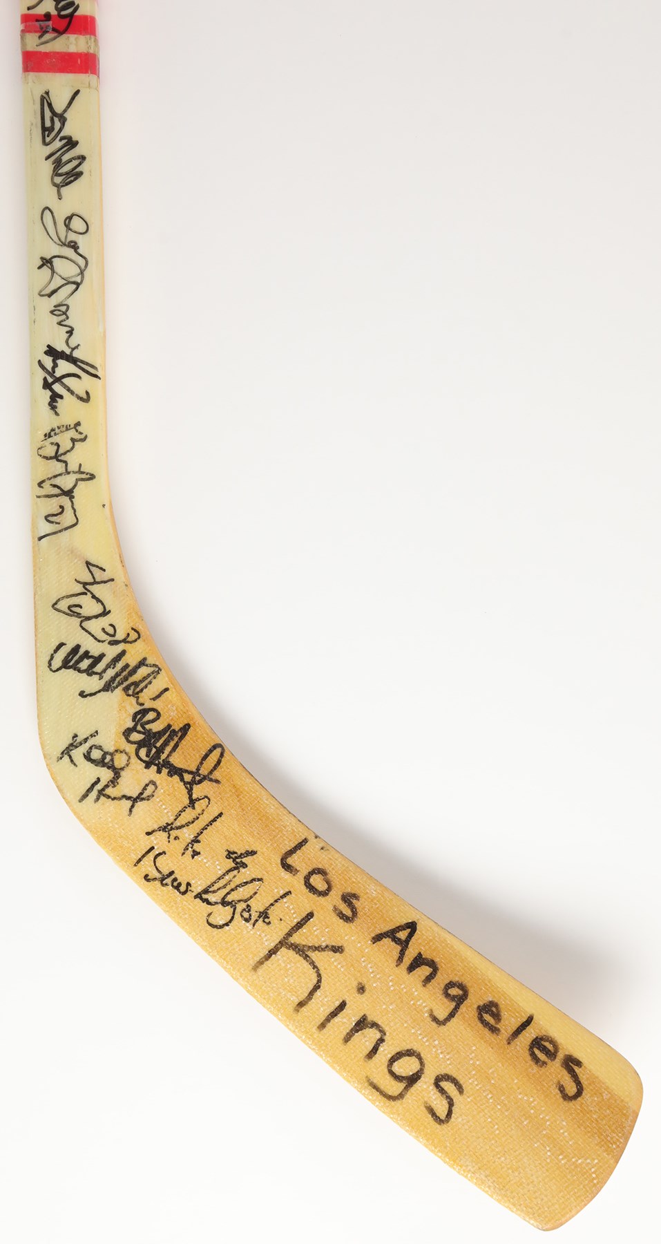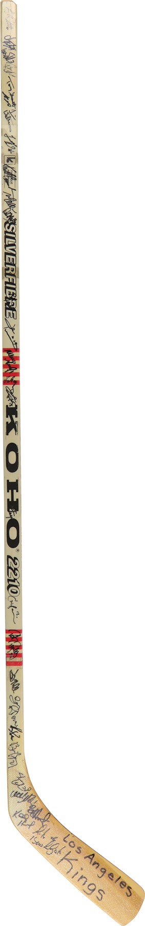Team-signed hockey stick by the 1989-90 LA Kings. (27) autographs include: Luc Robitaille, Dave Taylor, Todd Elik, Chris Kontos, Tony Granato, Brian Benning, and more.