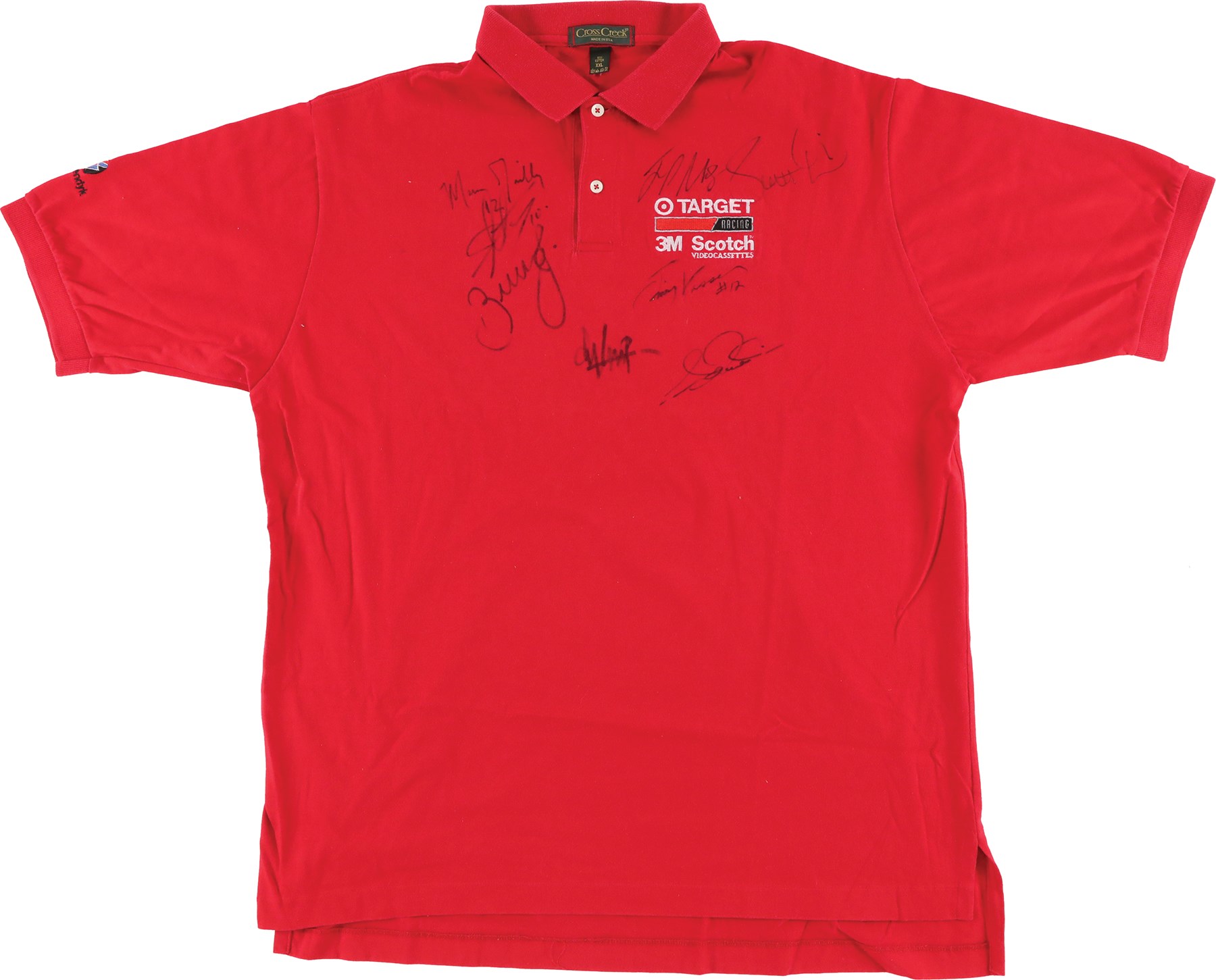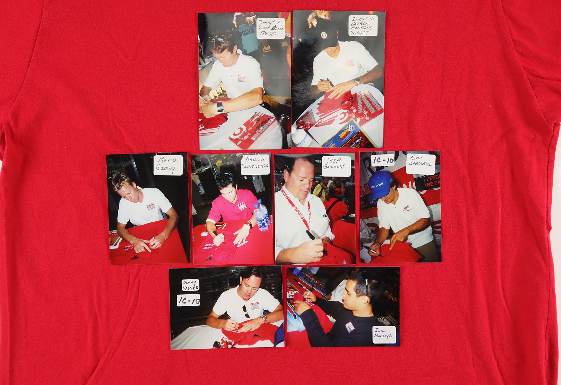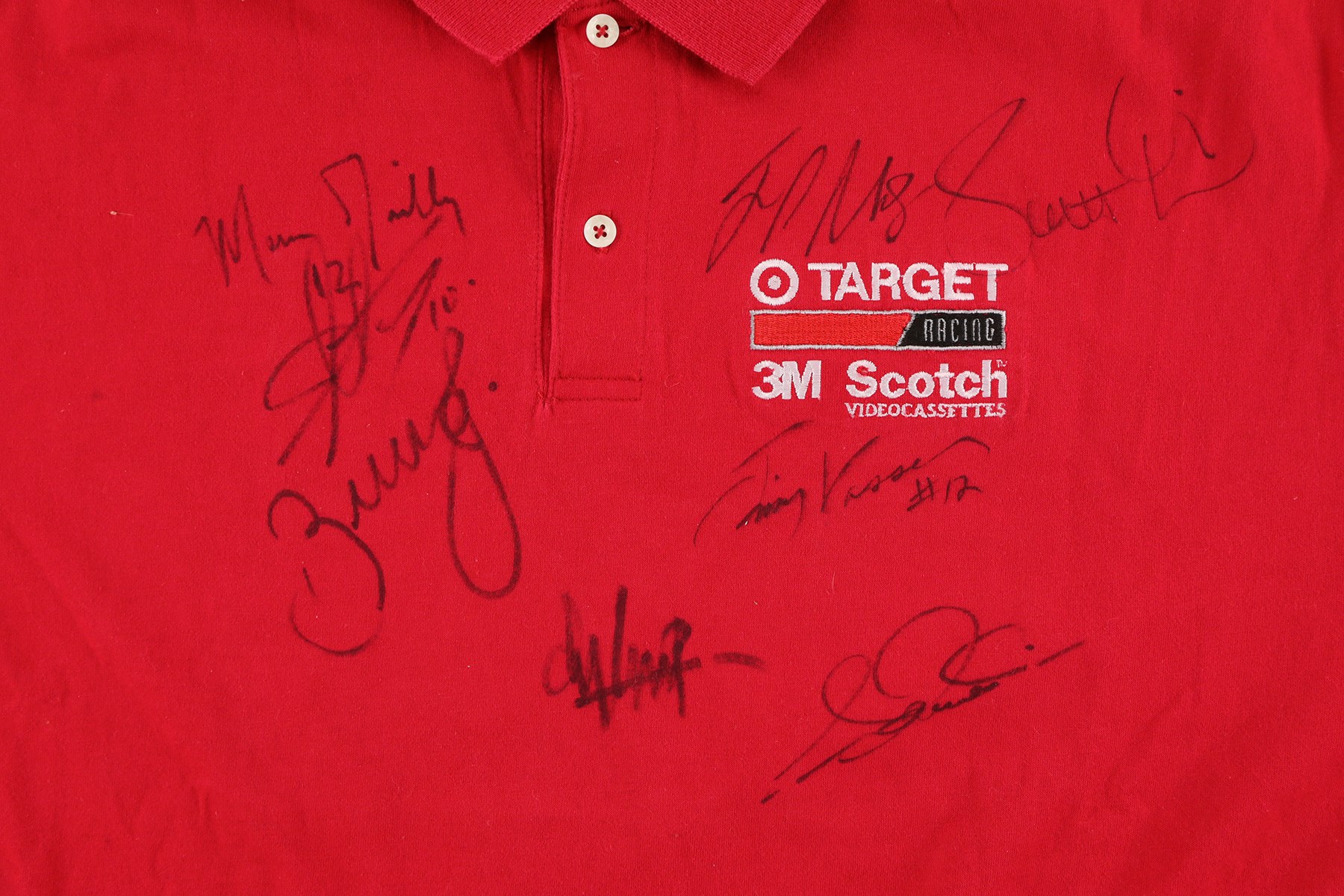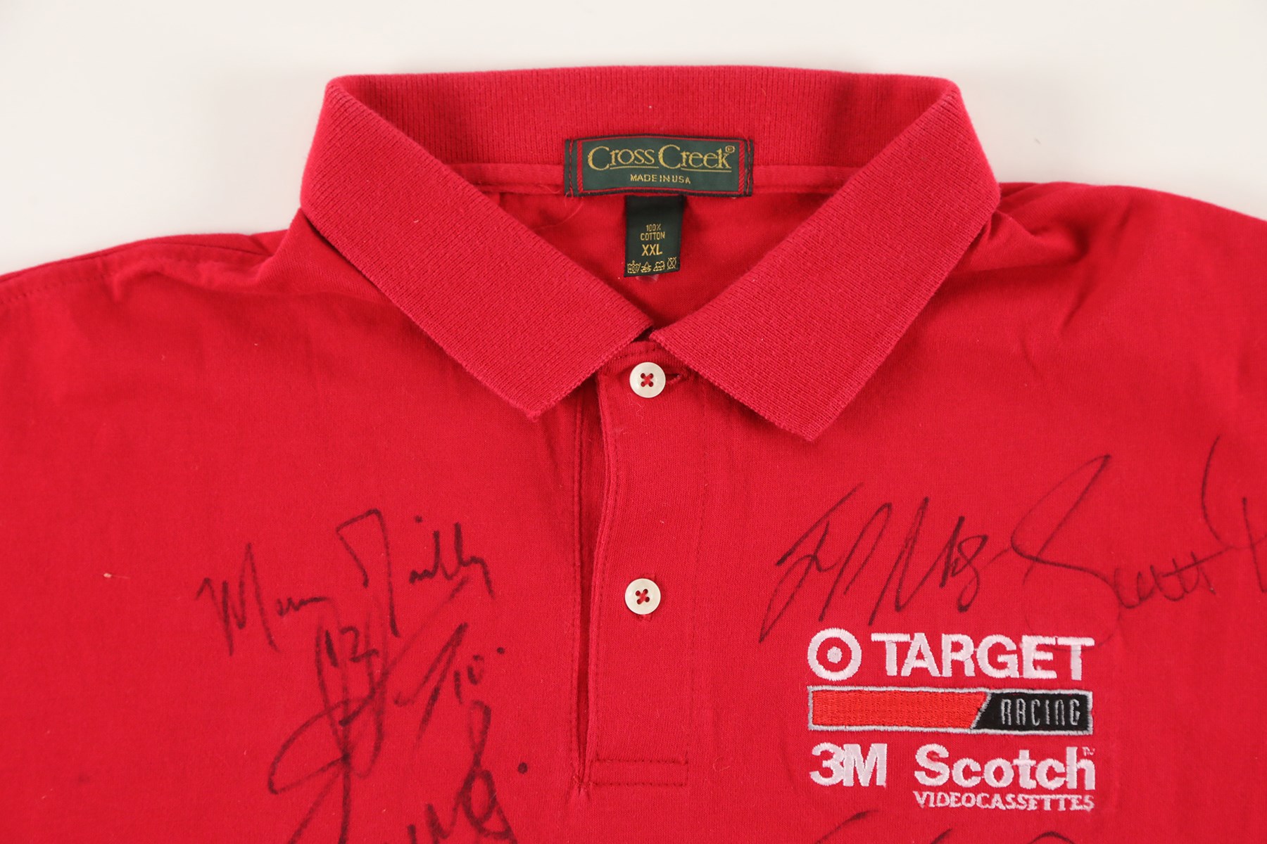 Target 3M racing polo shirt signed by (8) members including Juan Pablo Montoya, Alex Zanardi, Jimmy Vasser, Memo Gidley, Darren Mannin, Bruno Junqueira, Scott Dixon, Chip Ganassi. Comes with proof of each signer signing the exact shirt/ Cross Creek label in neck size XXL.