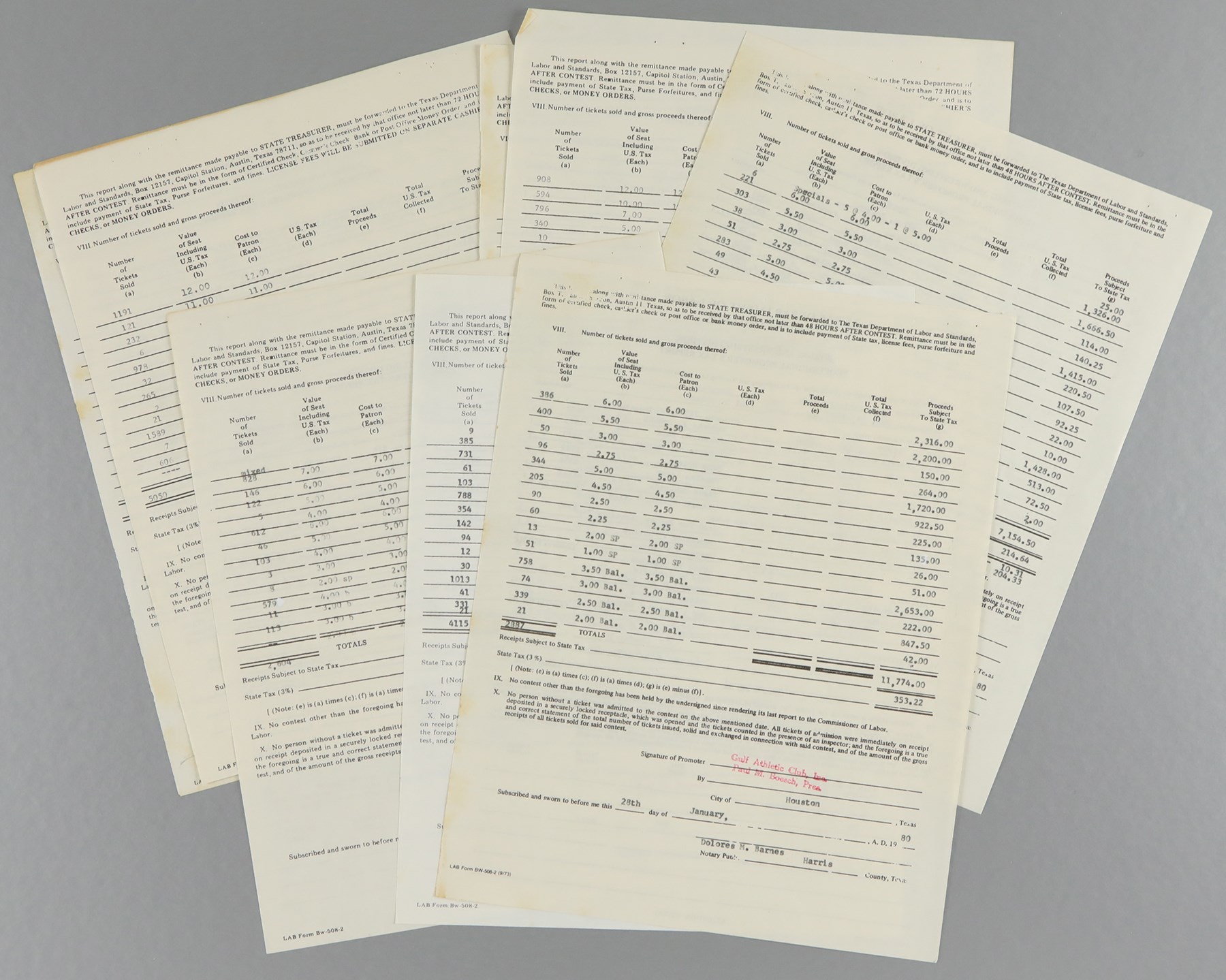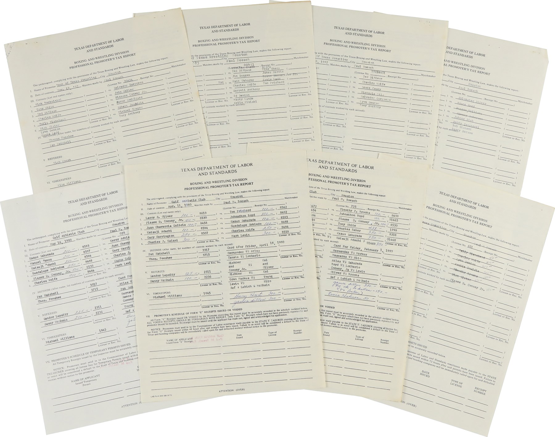 Lot # 879: 1980s Texas Wrestling Promoter's Tax Report Archive - Atlas, Ladd, DiBiase, Bundy, & More (25)