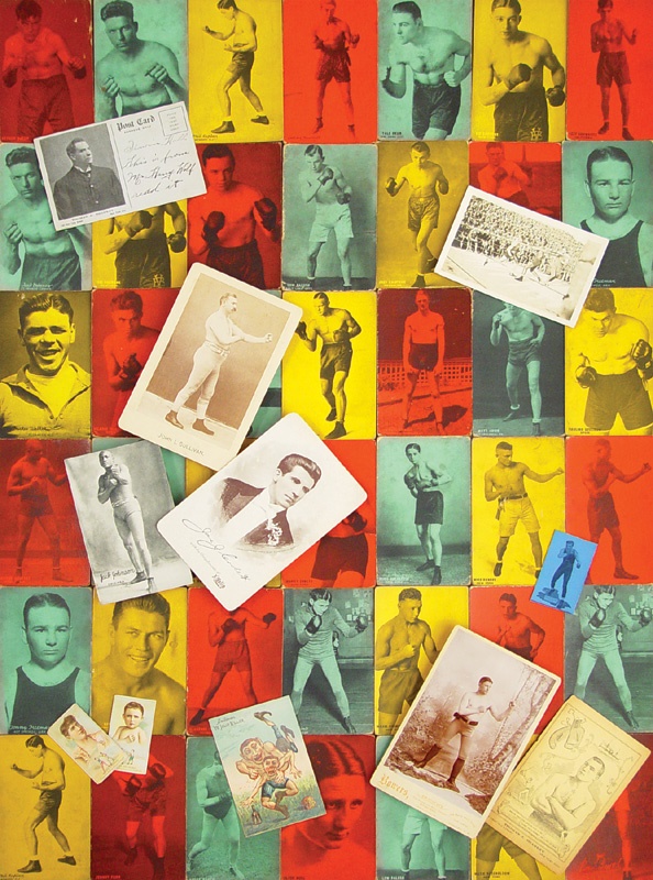 Two different John L. Sullivan cabinet cards highlight boxing collection. They measure 6 1/2" x 4 1/4". One is VG and the other is EX. Also included is: (24) Assorted early boxing cards including a couple of cabinet cards. (71) Various Exhibit cards from 1921 and 1928 highlighted by Jack Johnson and John L. Sullivan. These average VG to VG-EX. A nice assortment of early boxing memorabilia.