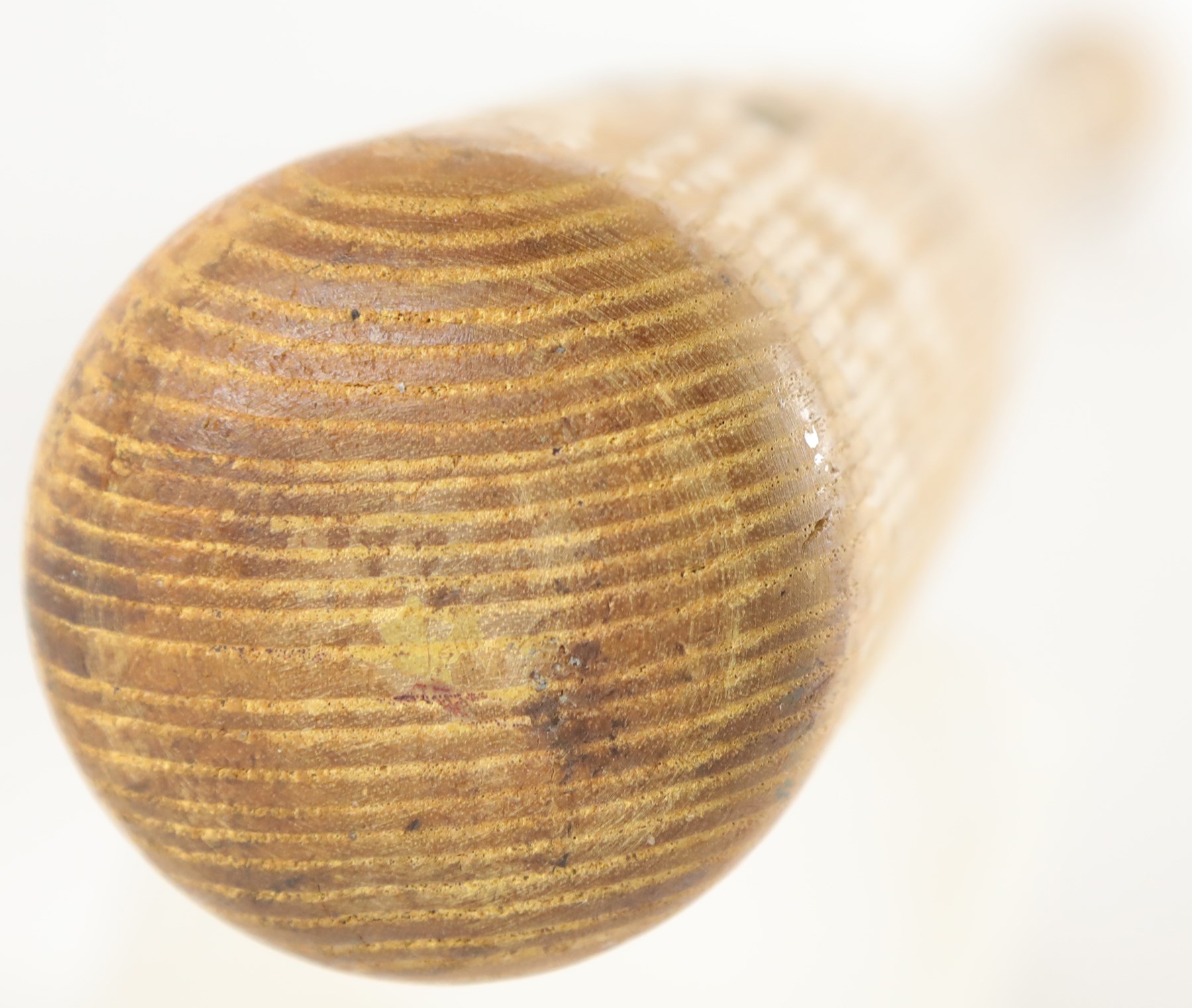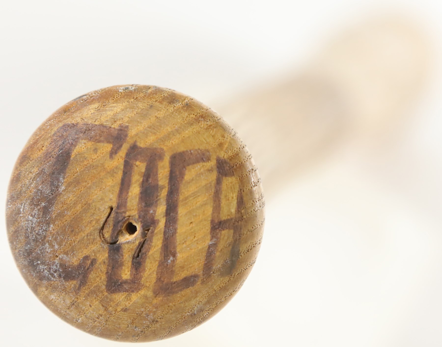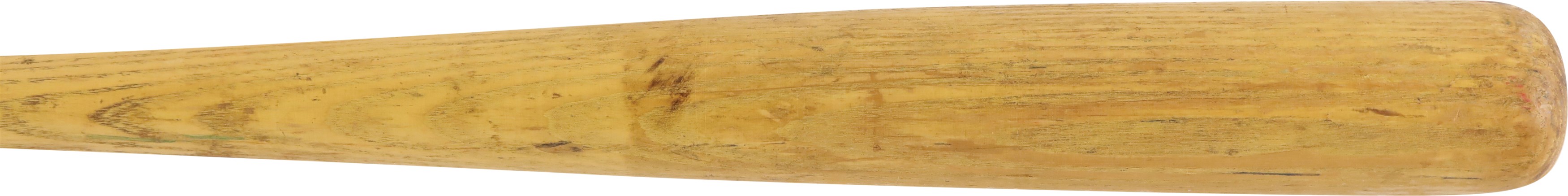 1969-72 Louisville Slugger bat used by long-time Detroit Tiger and fan favorite Bill Freehan. Referred to as "Coca" by his teammates, Bill Freehan is also remembered for his image on Coca-Cola bottle caps throughout the 1960s and '70s. Bat measures 34 7/8, weighs 35 ounces and features a hand written "COCA" on the knob in black marker. Fine gamer shows great use throughout with cracked handle and some minor grain swelling on back barrel. Bat features a personalized signature on the barrel.