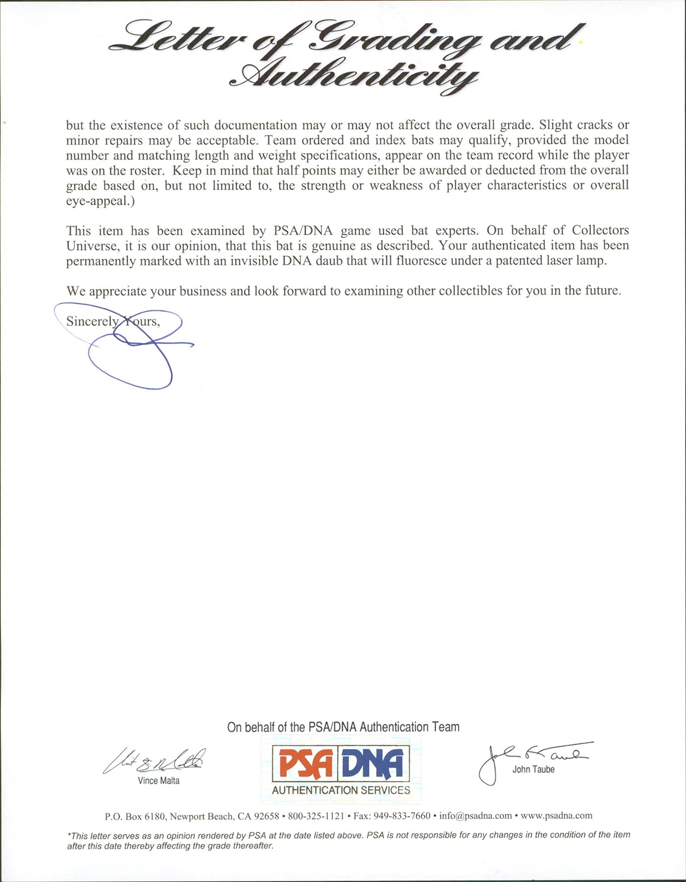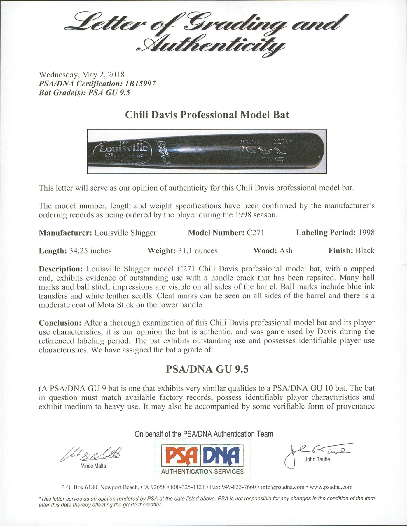 Lot # 609: 1998 Chili Davis New York Yankees Game Used Bat - World Championship Year (PSA GU 9.5)