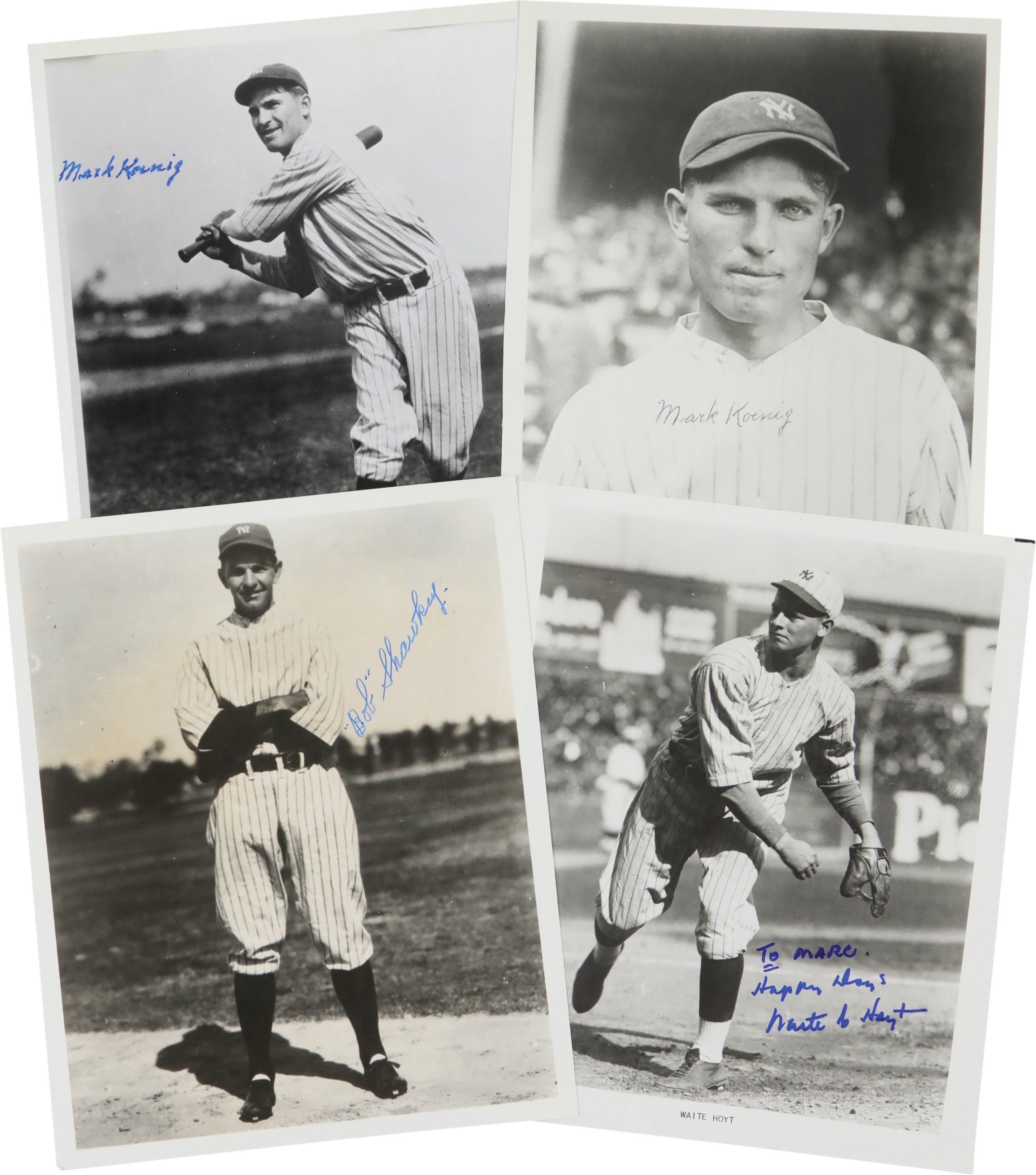 8x10" Black & White Photos (5): Joe Dugan, Waite Hoyt, Mark Koenig (two different examples), and Bob Shawkey.