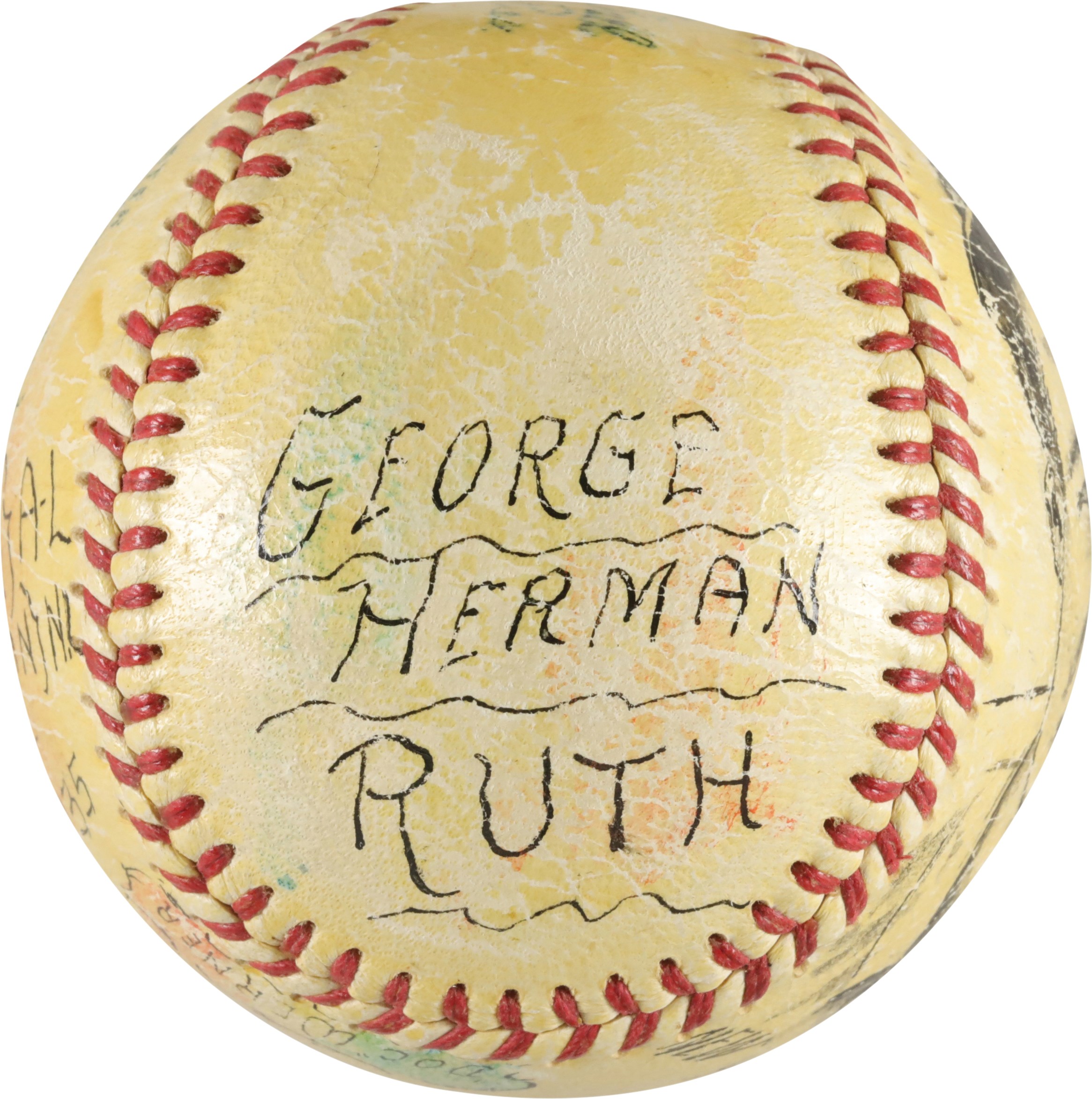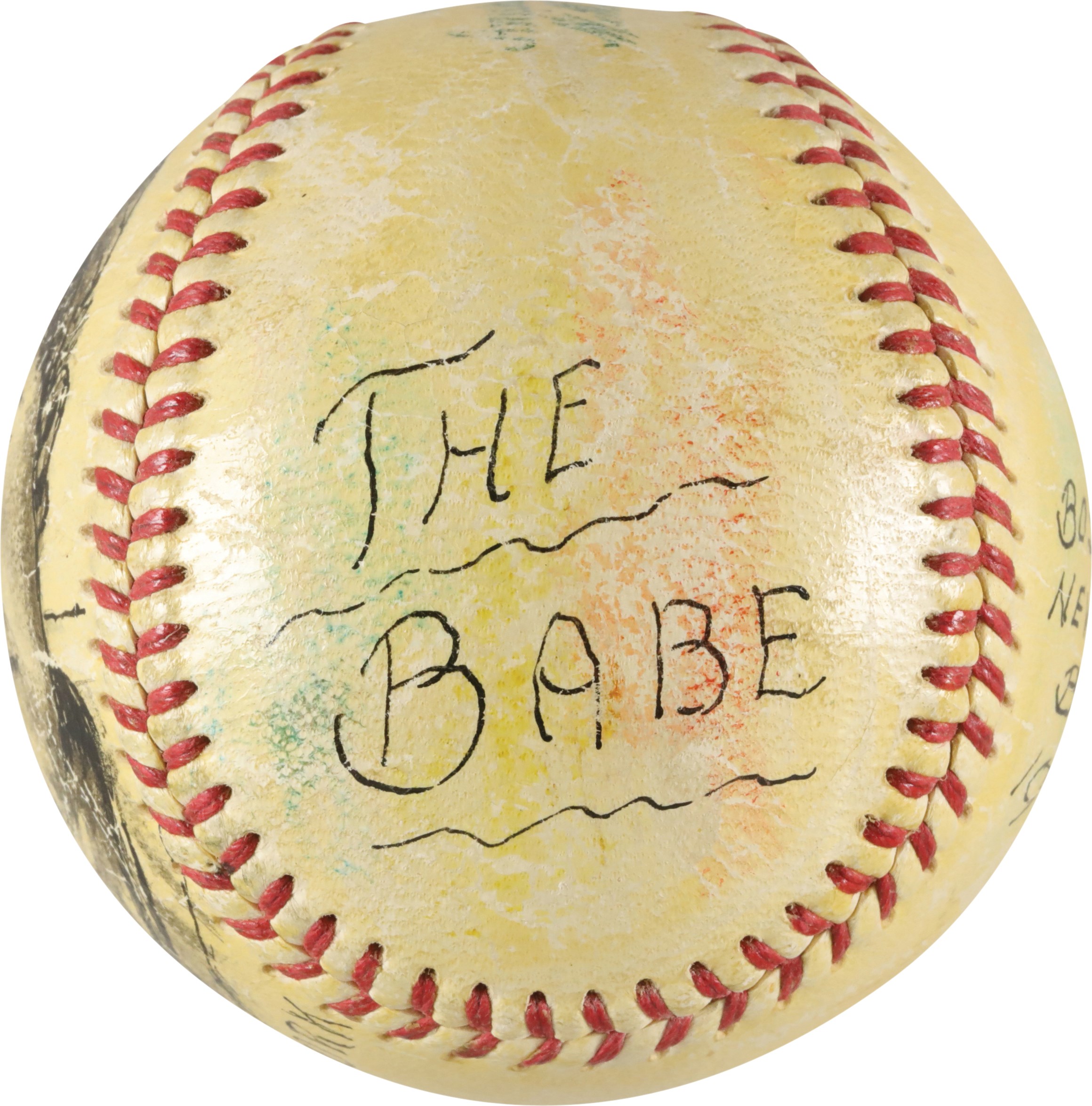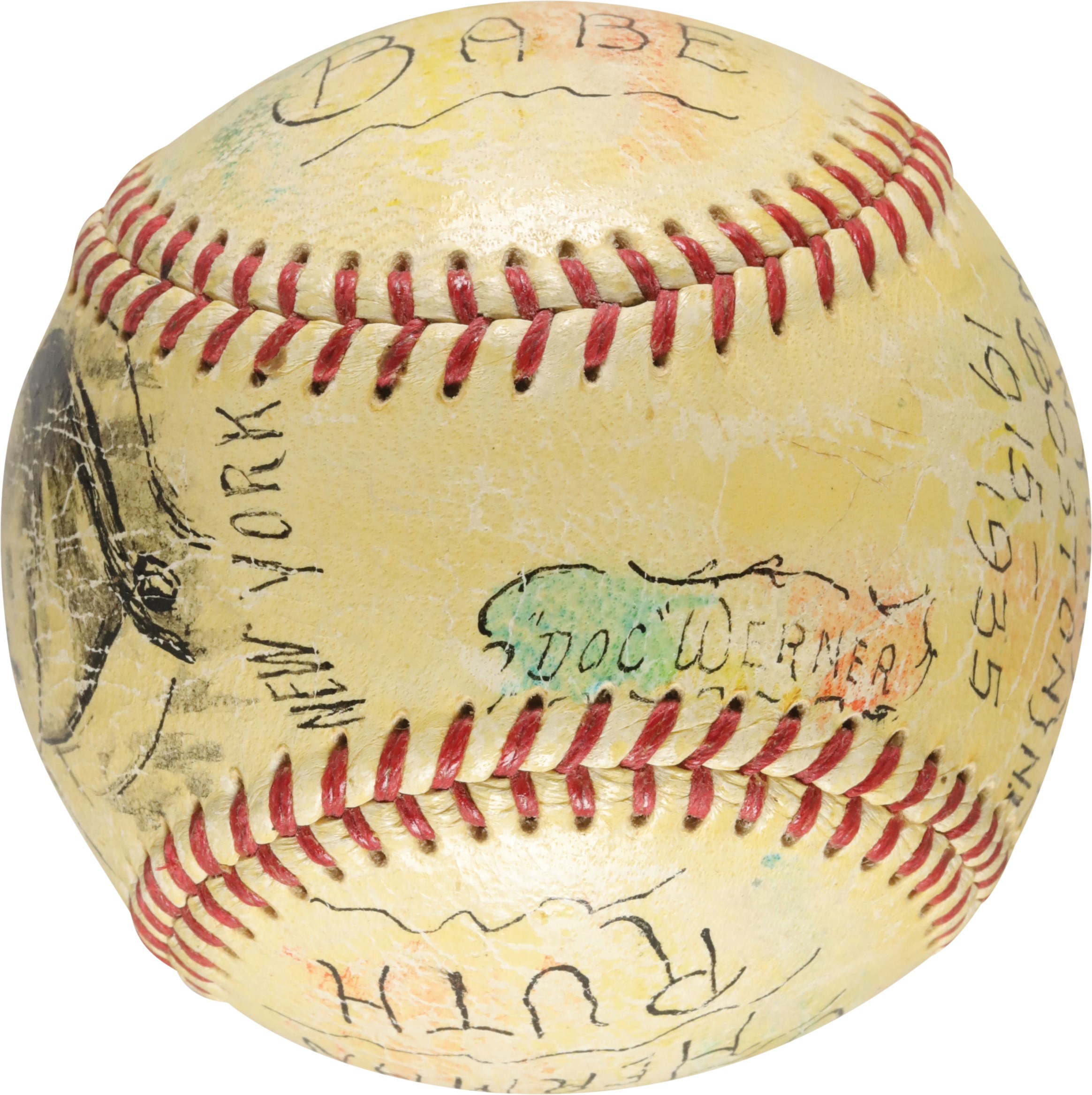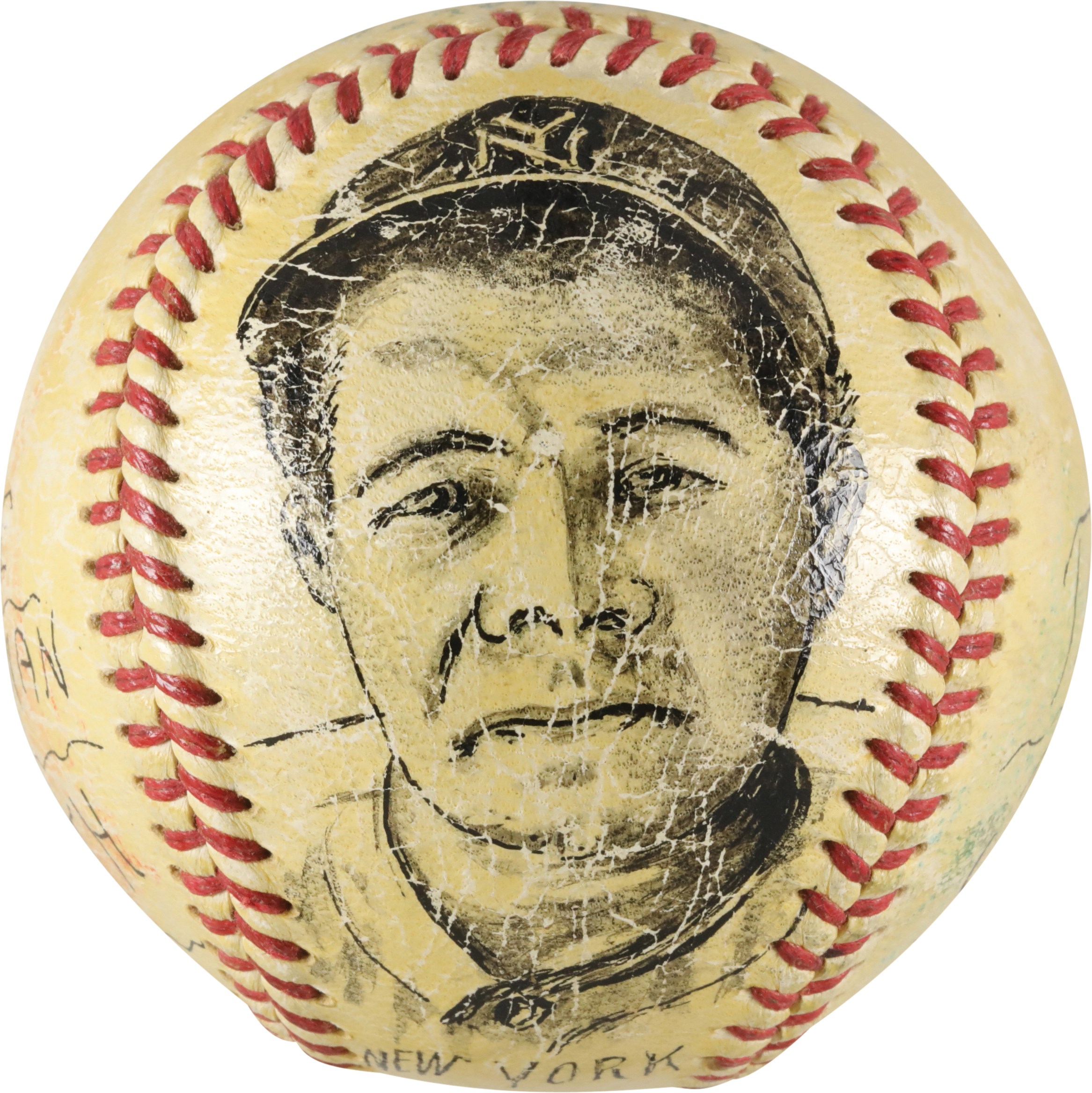 Lot # 695: Babe Ruth Hand-Drawn Portrait Baseball by Doc Werner